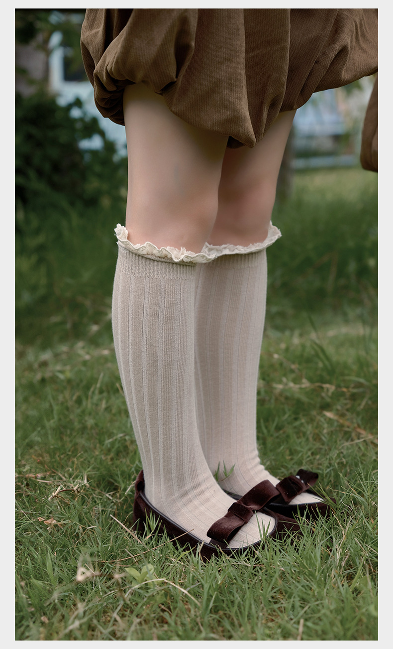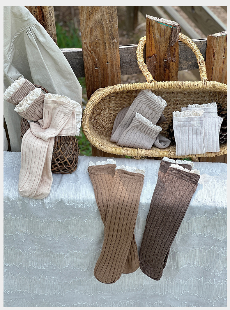 소녀 양말 봄 가을 중간 길이 양말 어린이 면 양말 레이스 공주 양말 서양식 소녀 아기 스타킹