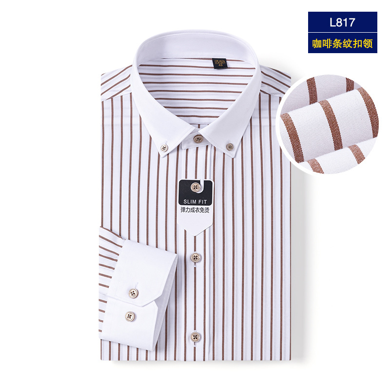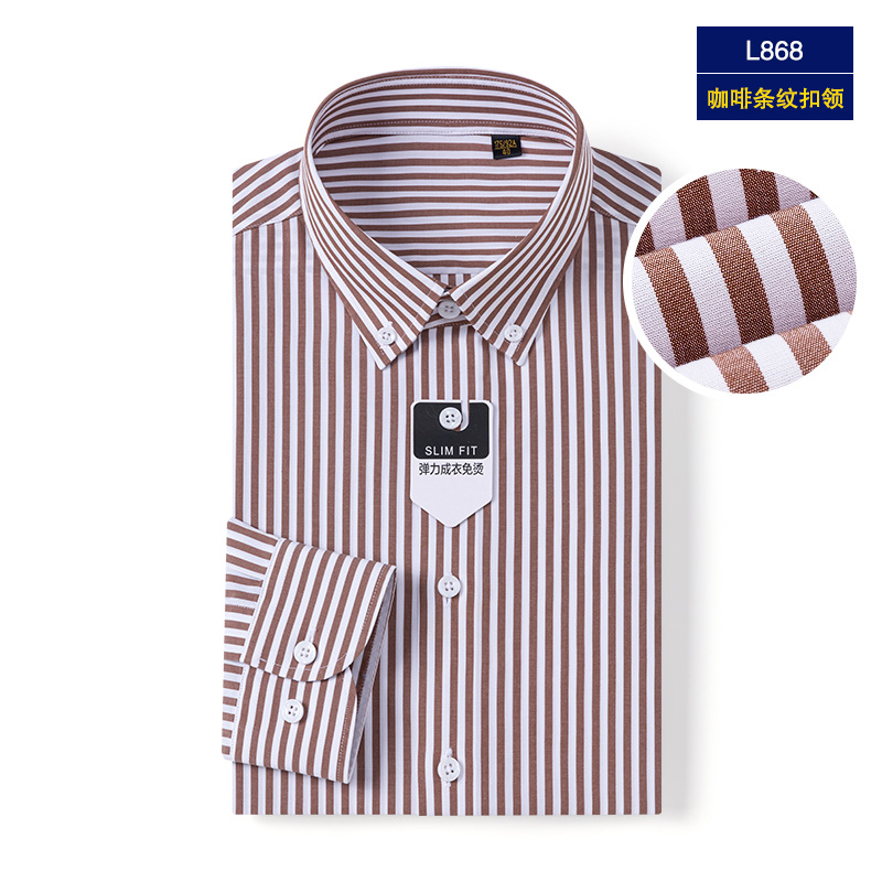 엄선된 100수 DP 무다림 순면 비즈니스 셔츠 남성용 버튼 칼라 정장용 구김 방지 스트라이프 셔츠