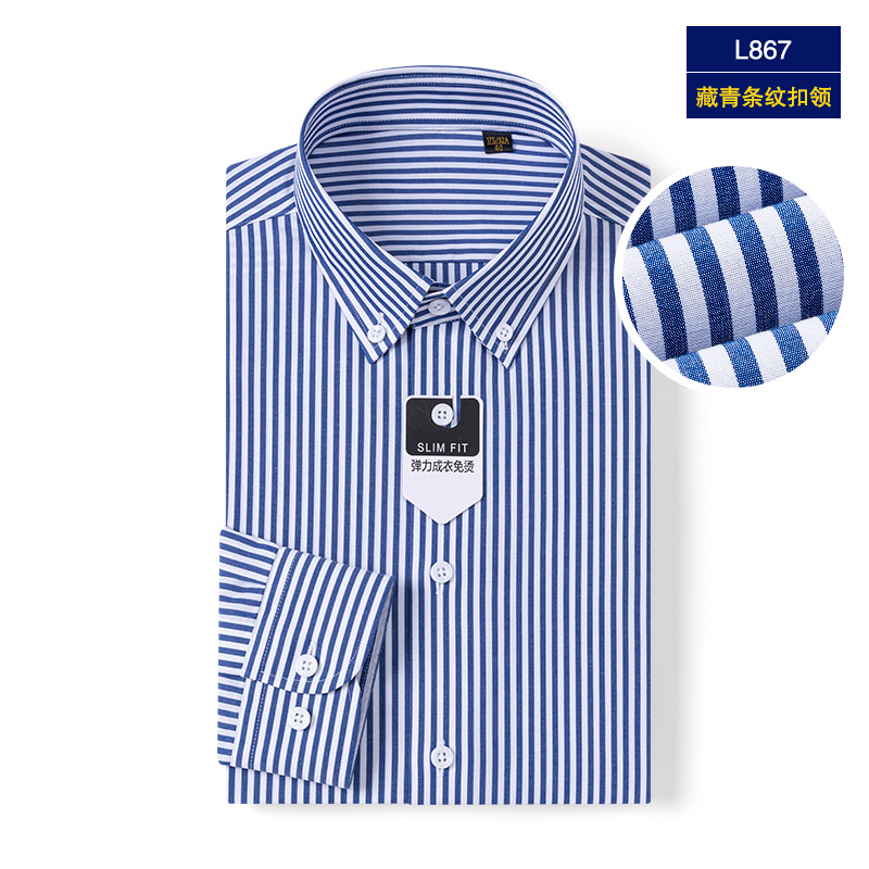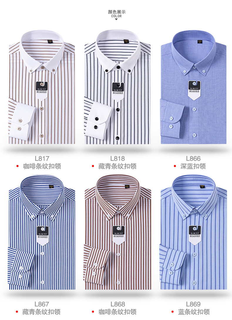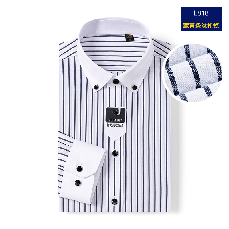 엄선된 100수 DP 무다림 순면 비즈니스 셔츠 남성용 버튼 칼라 정장용 구김 방지 스트라이프 셔츠스토어 가기