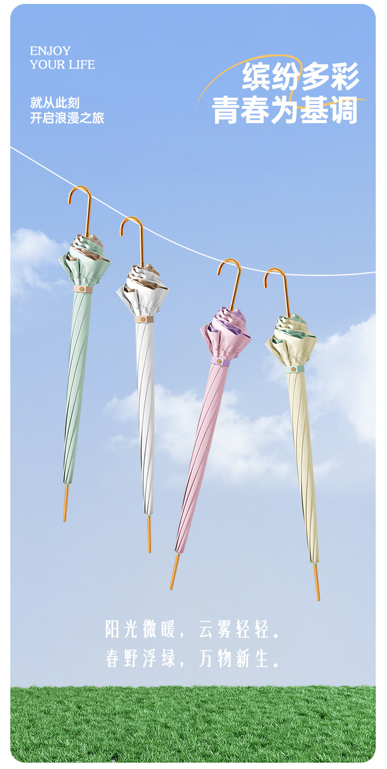 새로운 Lic 우산 소녀의 작은 신선한 긴 손잡이 우산 강력하고 튼튼한 써니 우산 높은 가치 빛 럭셔리 태양 우산
