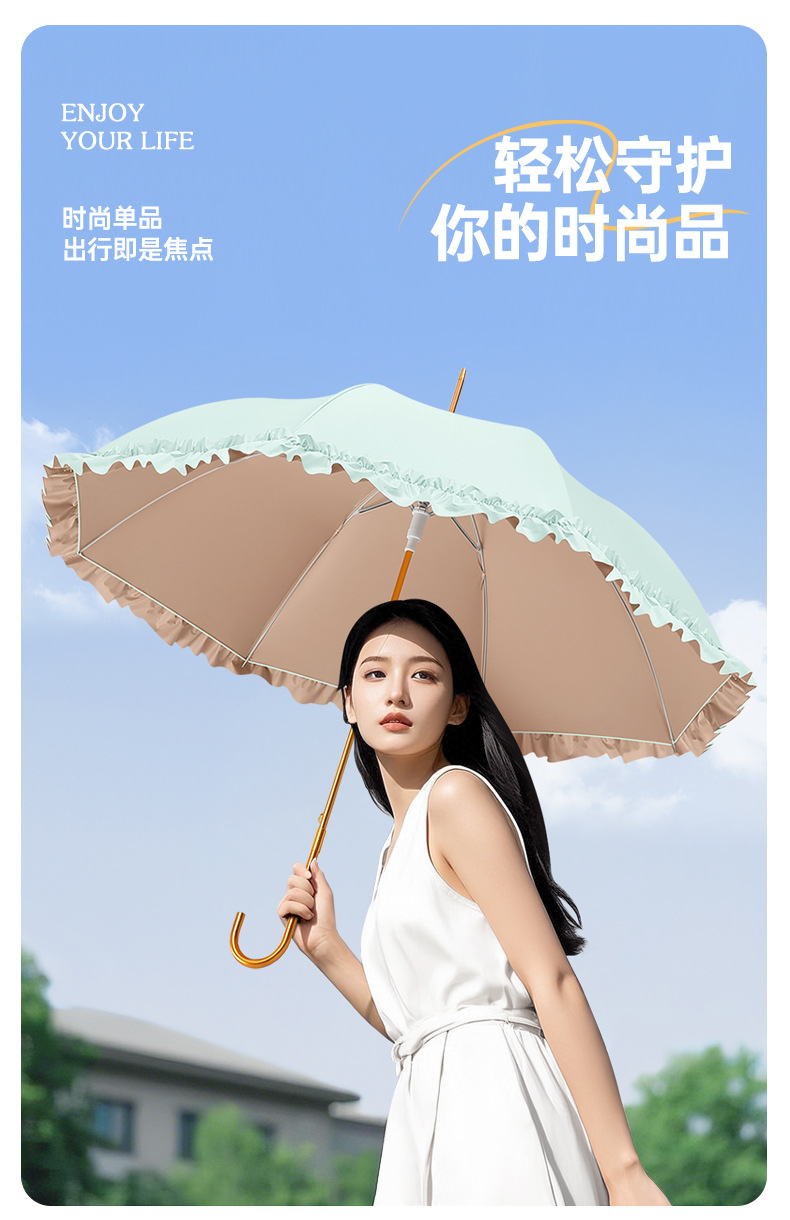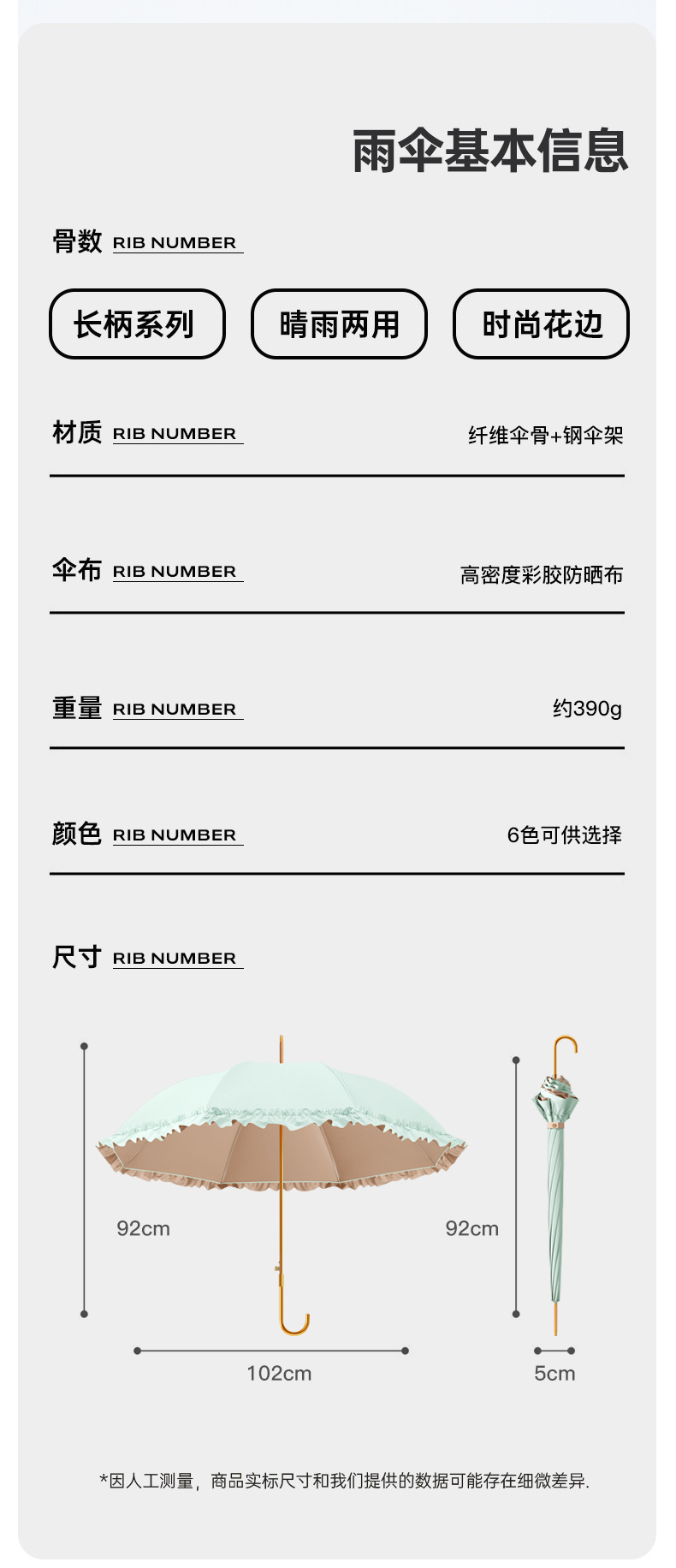 • 직선 컬러 고무 레이스 우산 - 말차 라떼
