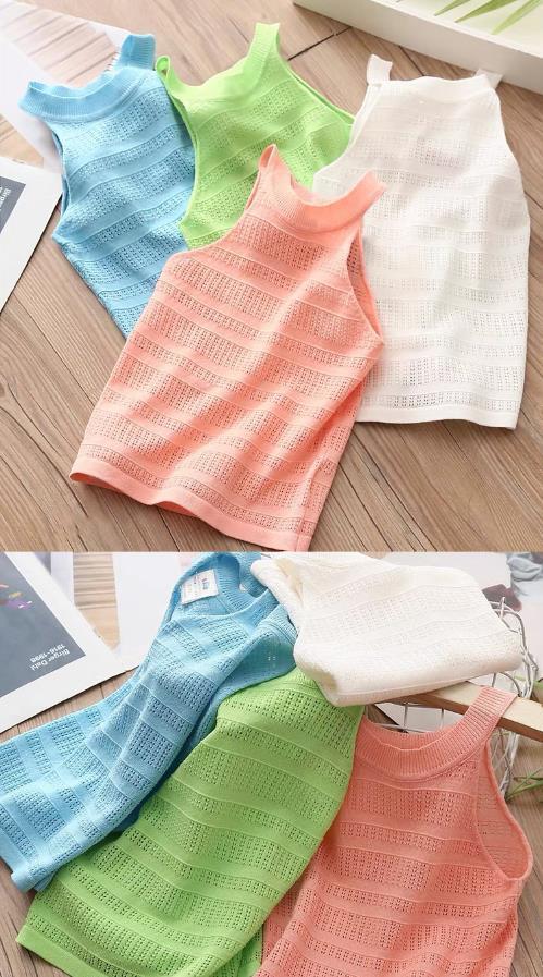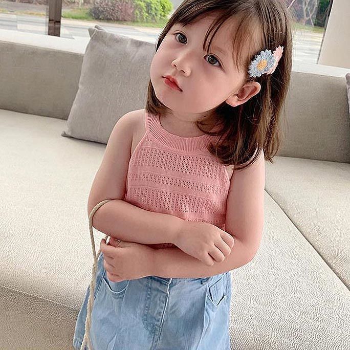 인즈 스타일 걸스 민소매 조끼 2025 여름 한국 스타일 의상 아기 소녀 스타일리스트 어린이 솔리드 컬러 카미솔 탑 T스토어 가기