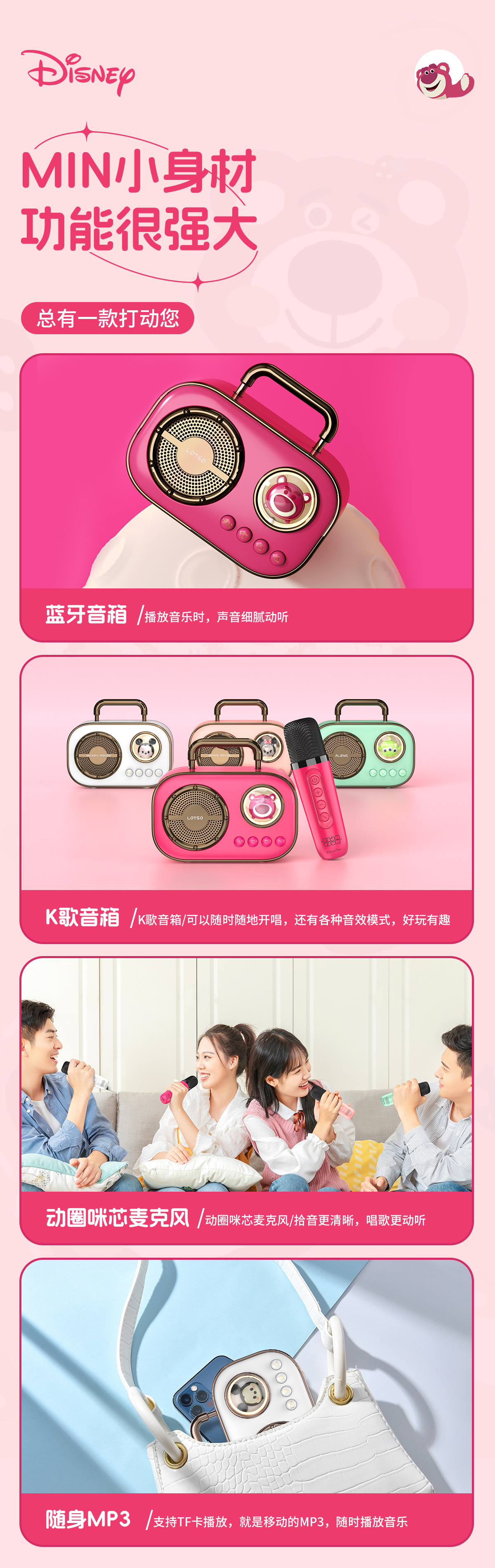 2025 새로운 디즈니 블루투스 오디오 야외 휴대용 선물 디즈니 콩바오 어린이 스피커 노래스토어 가기