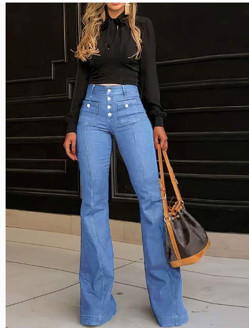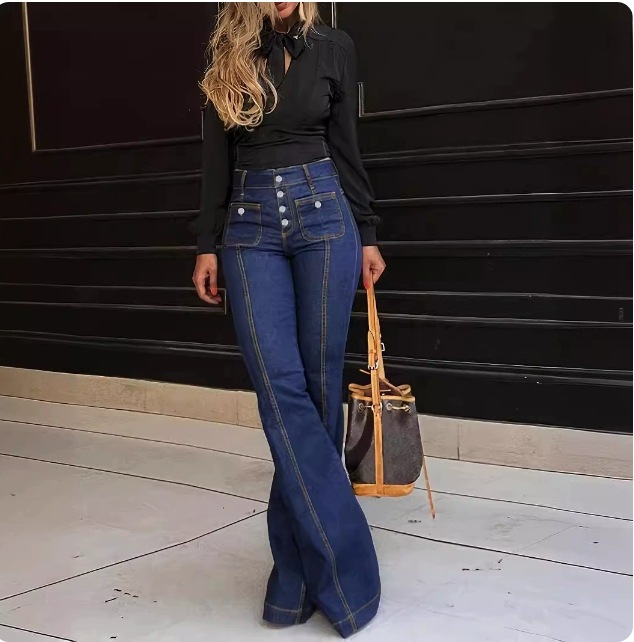 유럽과 미국의 2025 여성 새로운 패션 올 매치 캐주얼 하이 웨이스트 슬림 핏 슬리밍 버튼 혼 데님 바지 여성스토어 가기