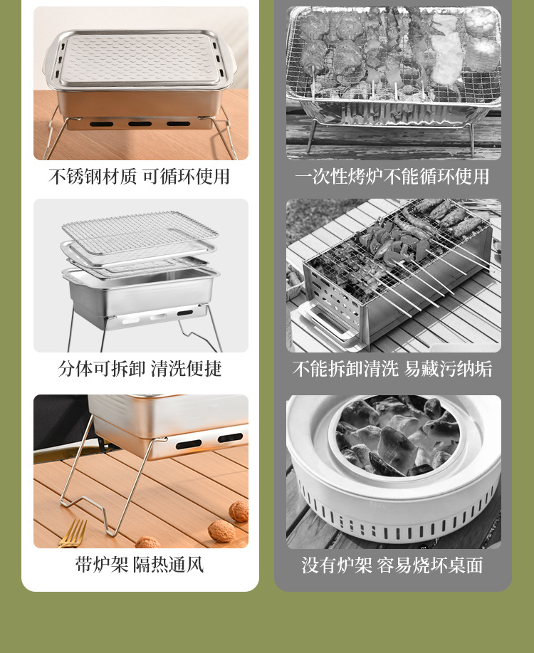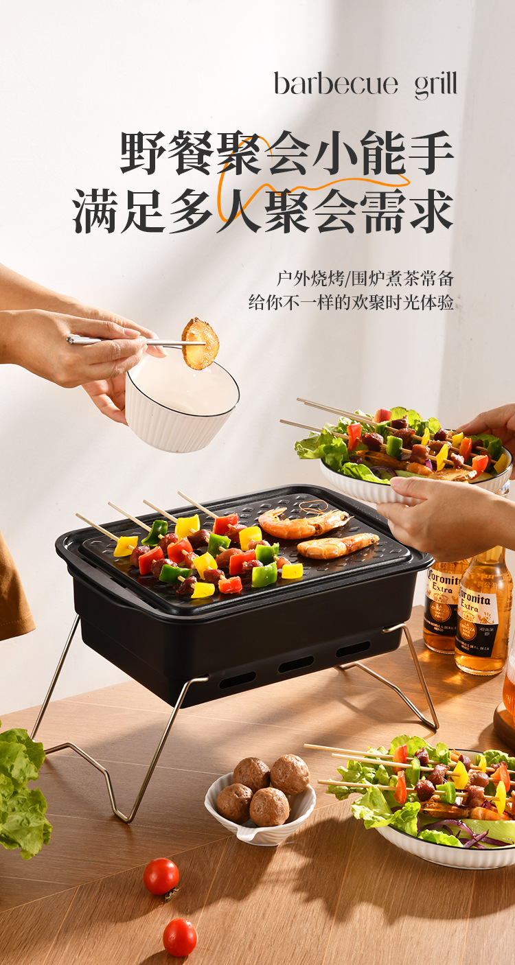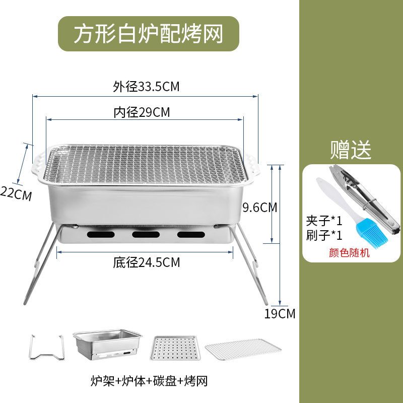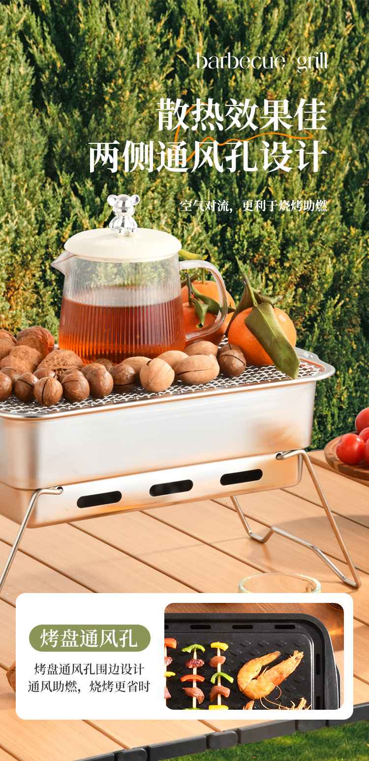 厂家直供 方形露营聚餐碳烤炉便携式烧烤架户外庭院不锈钢烧烤炉