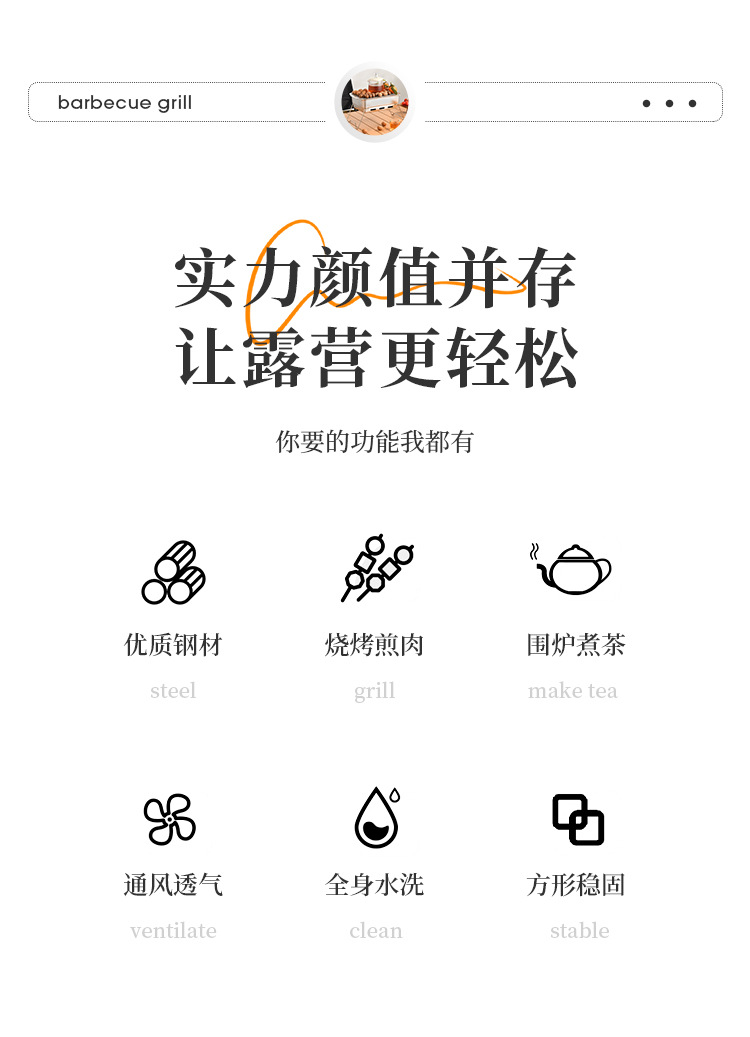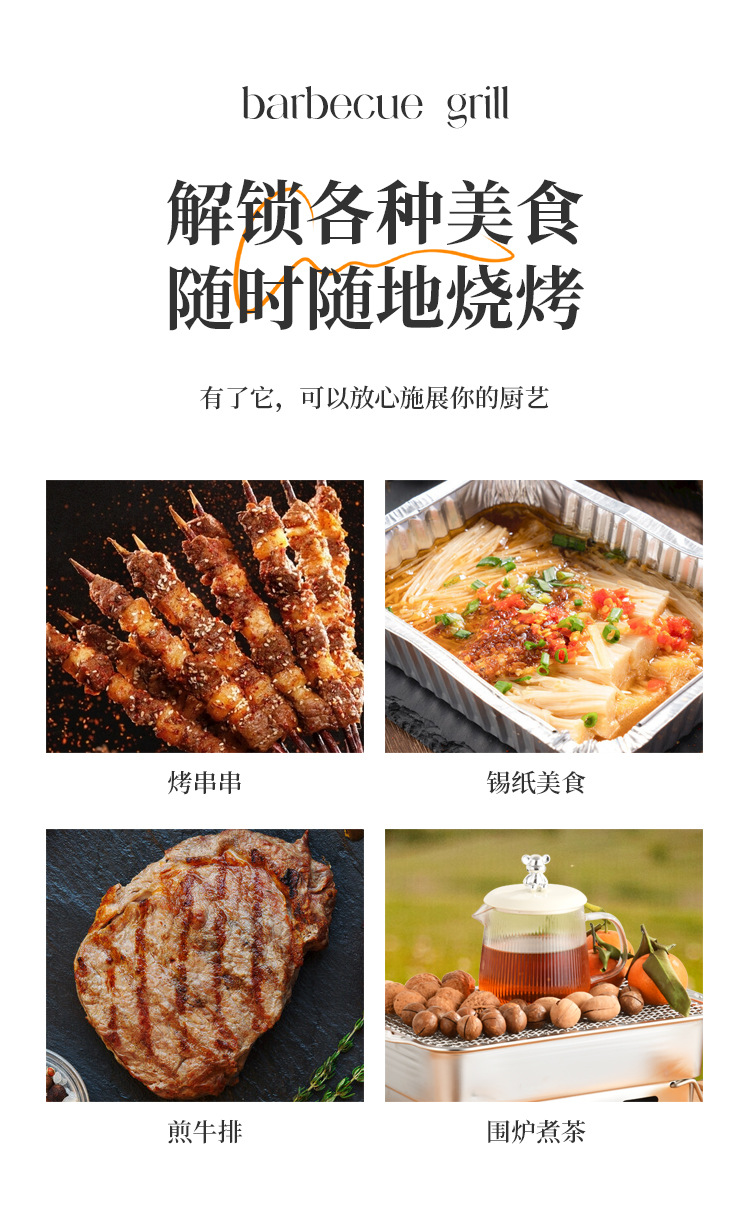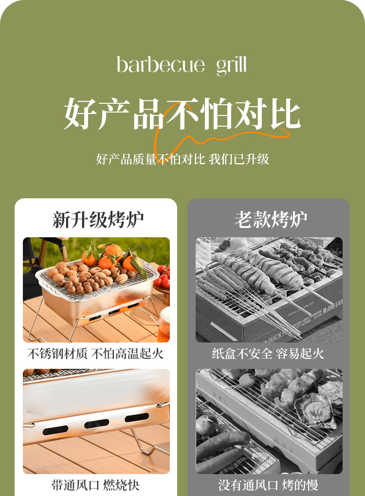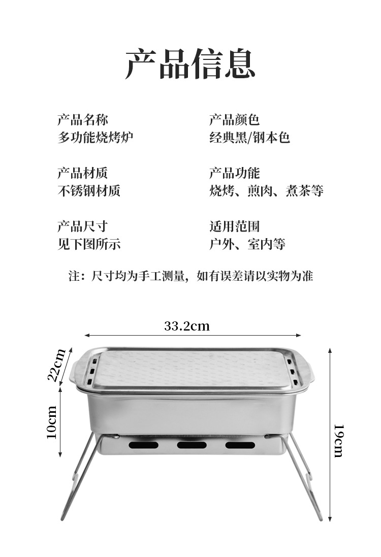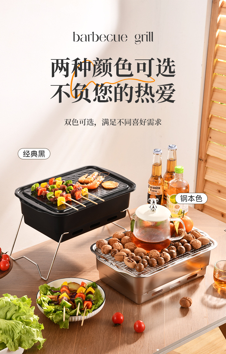 厂家直供 方形露营聚餐碳烤炉便携式烧烤架户外庭院不锈钢烧烤炉