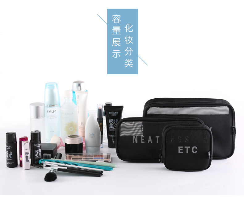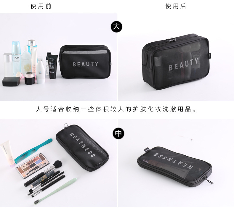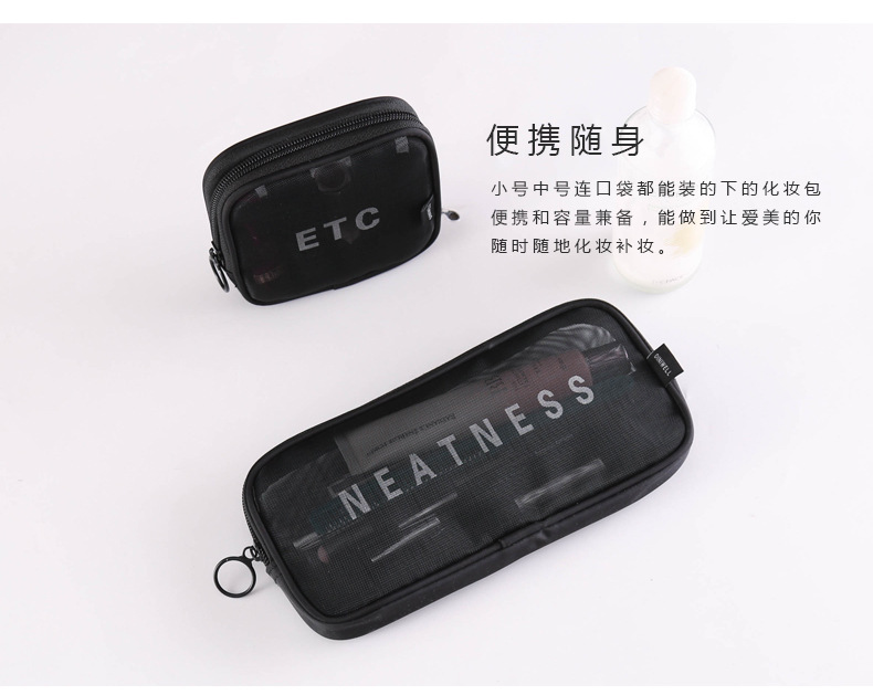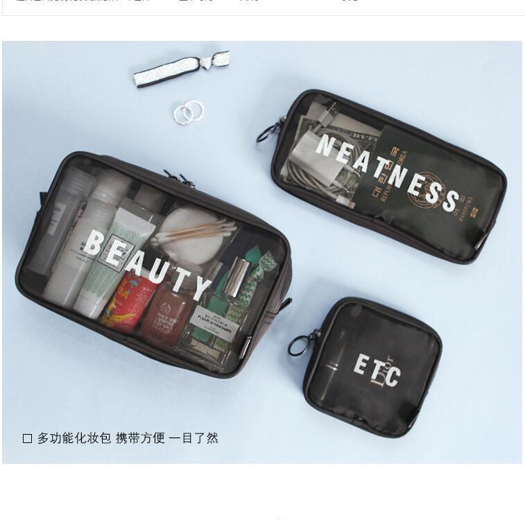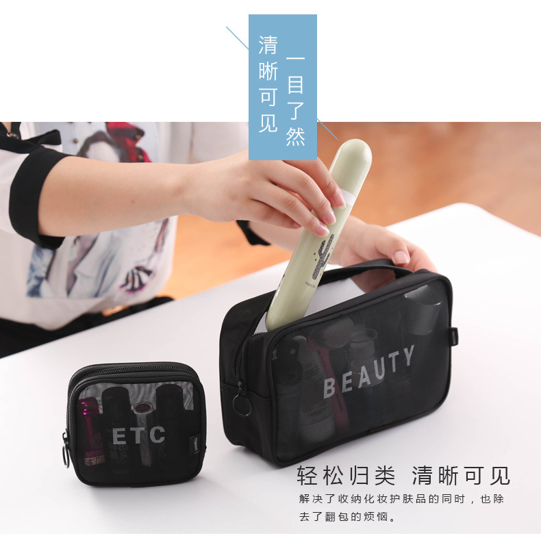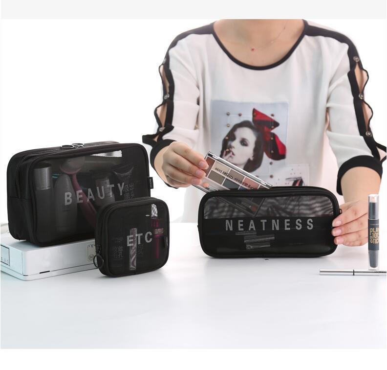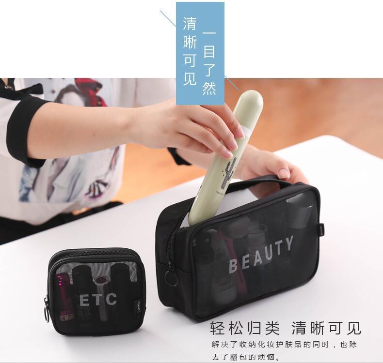 메쉬 화장품 가방 스몰 사이즈 휴대용 여행 휴대용 블랙 투명 대용량 여성용 립스틱 화장품 브러시 스킨 케어 보관 가방스토어 가기