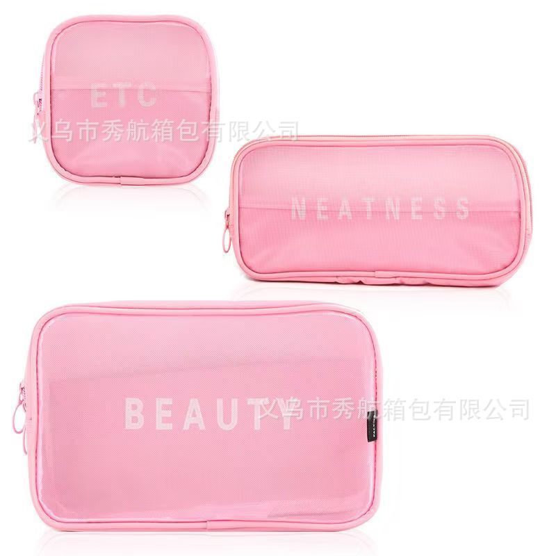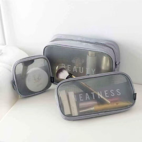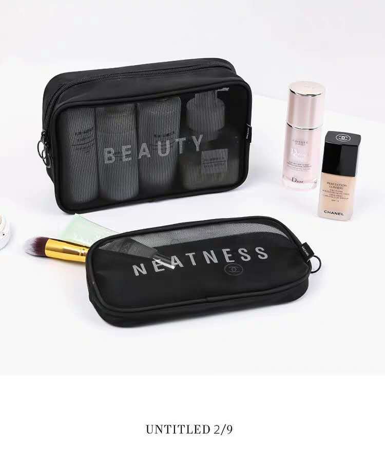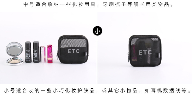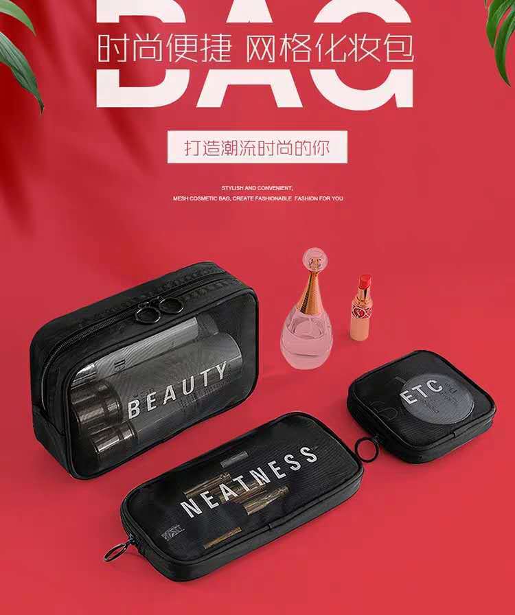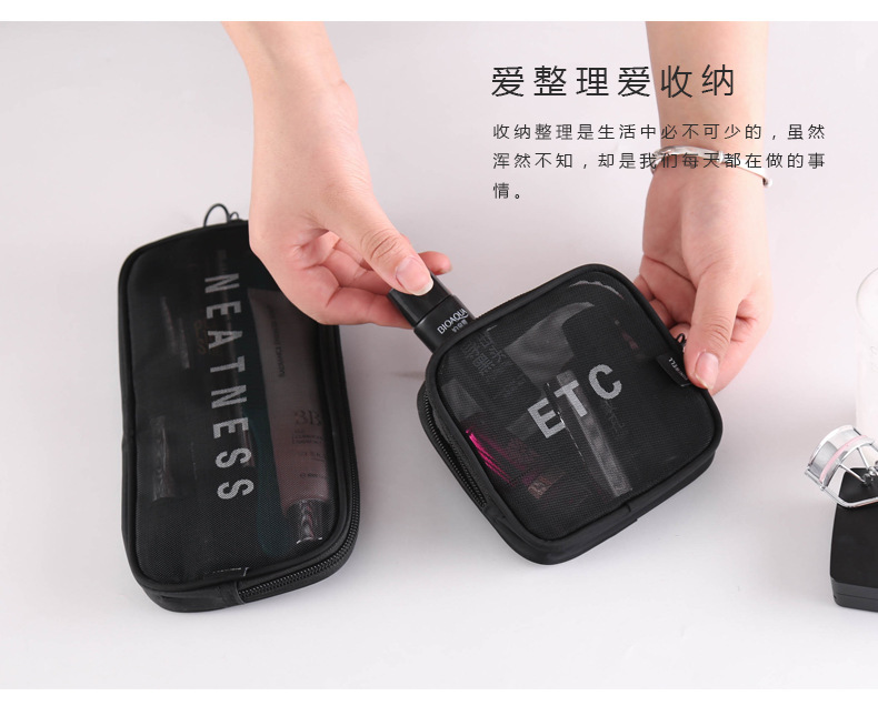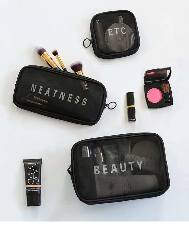 메쉬 화장품 가방 스몰 사이즈 휴대용 여행 휴대용 블랙 투명 대용량 여성용 립스틱 화장품 브러시 스킨 케어 보관 가방스토어 가기