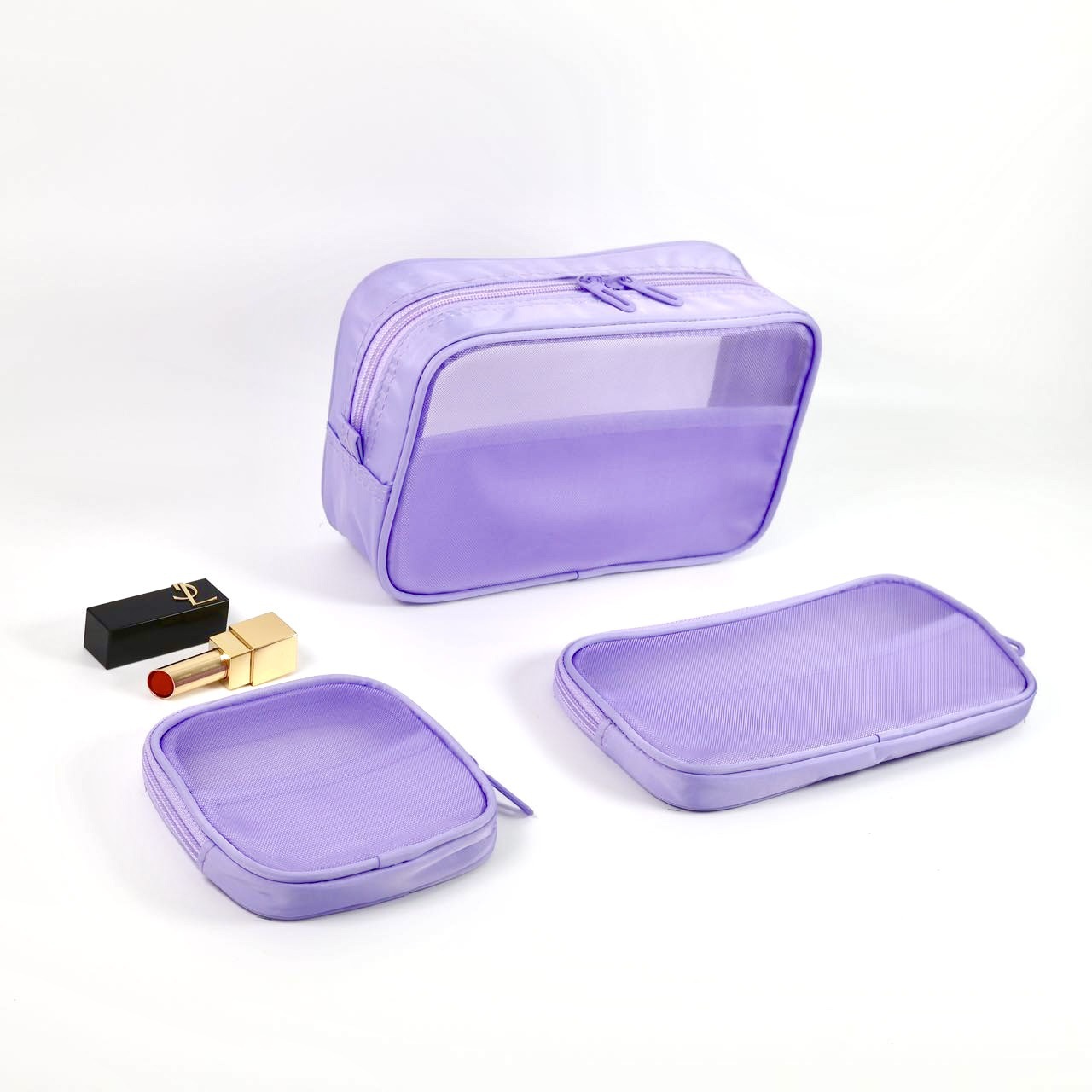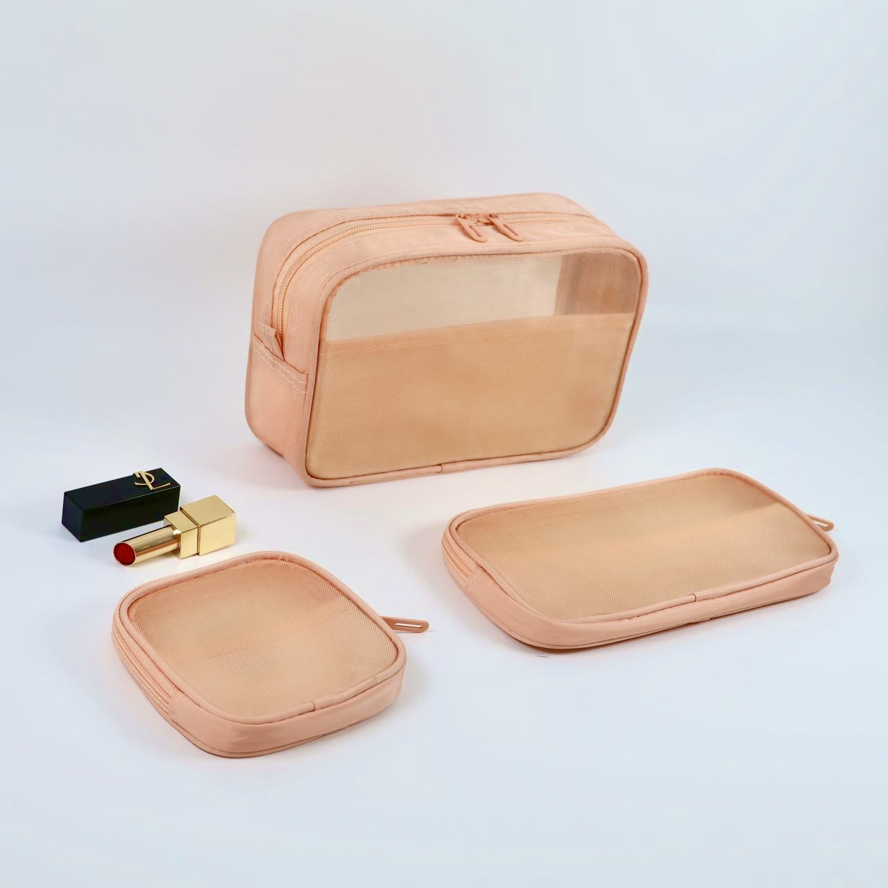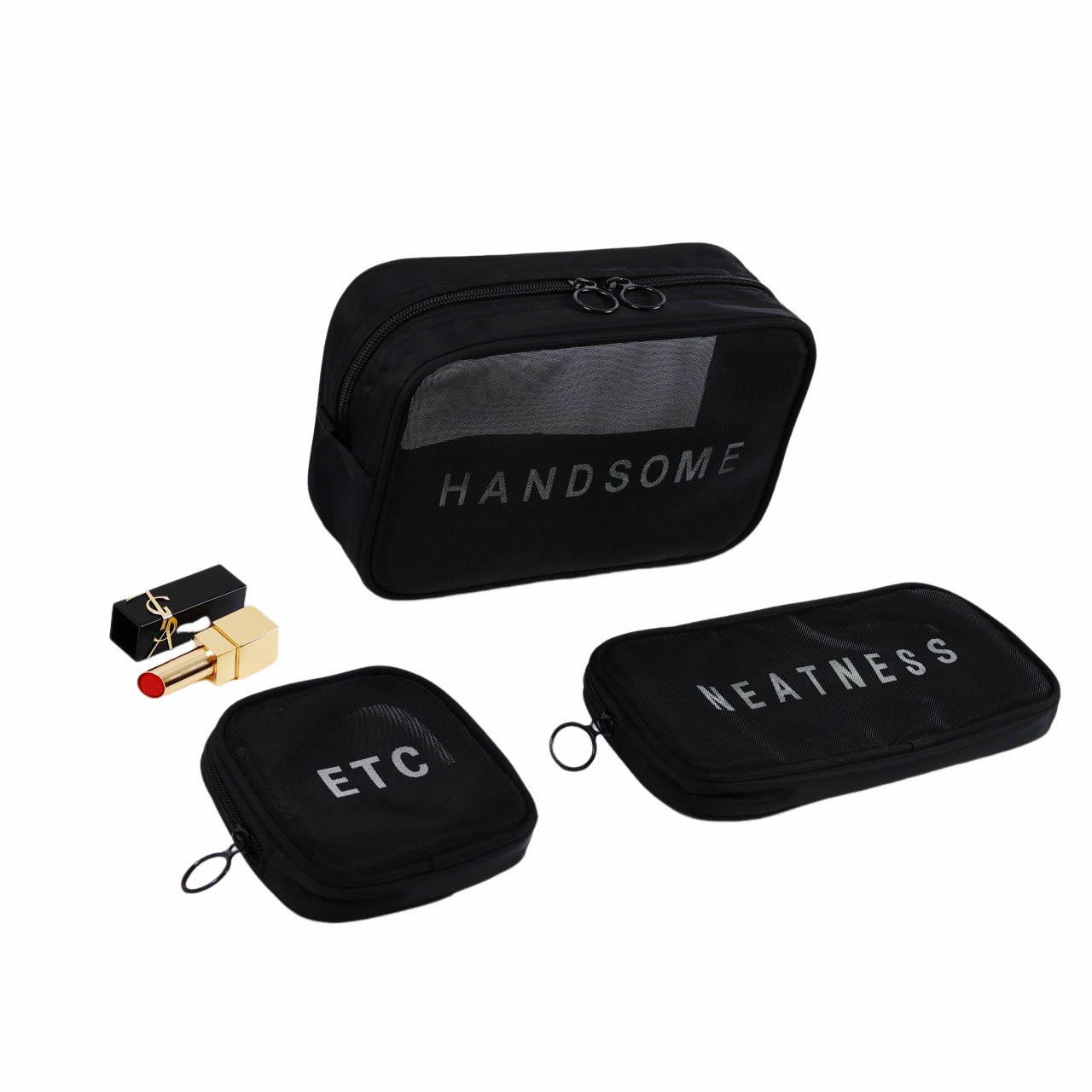메쉬 화장품 가방 스몰 사이즈 휴대용 여행 휴대용 블랙 투명 대용량 여성용 립스틱 화장품 브러시 스킨 케어 보관 가방
