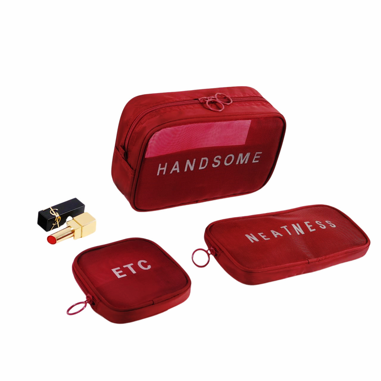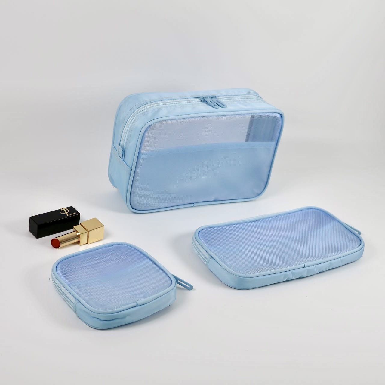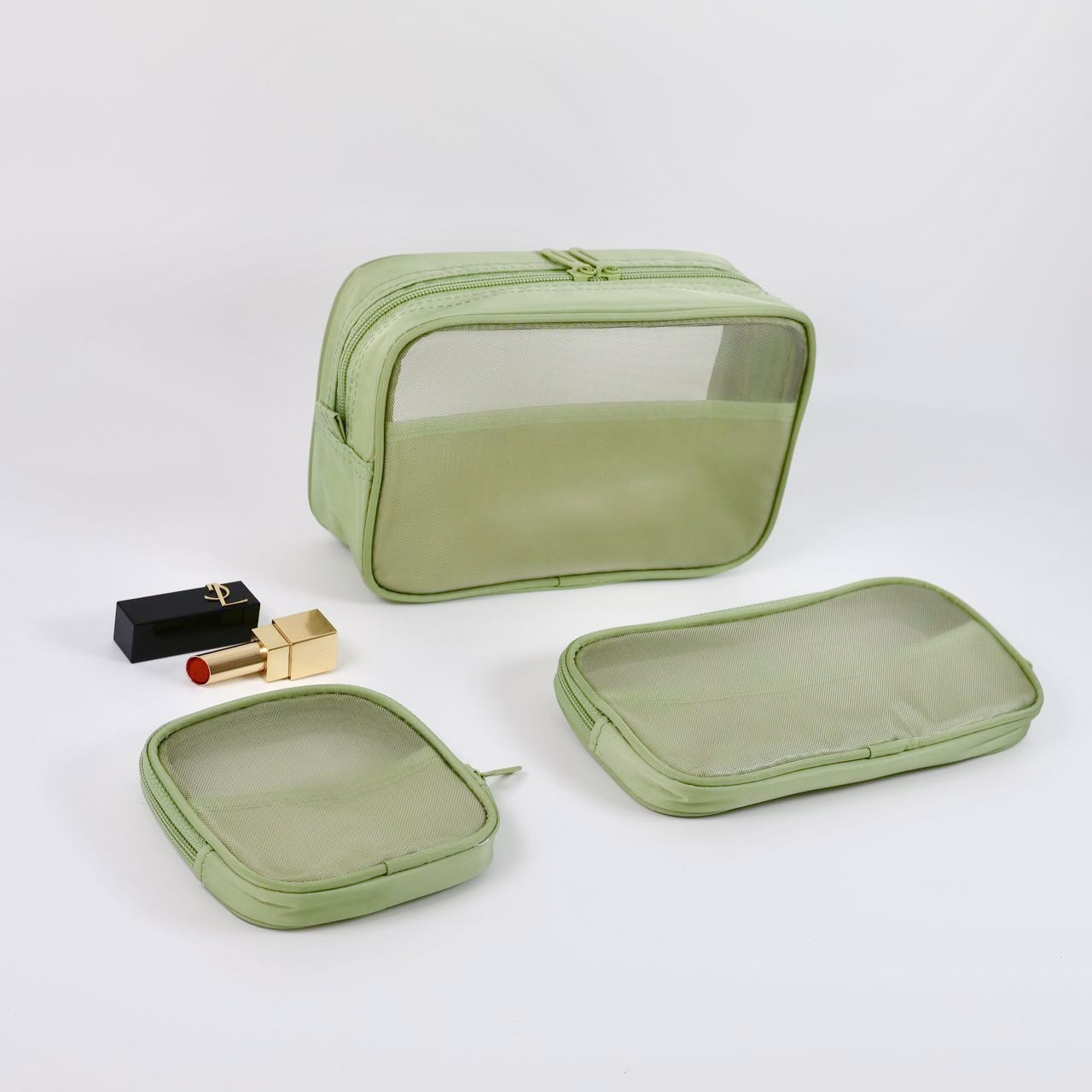 메쉬 화장품 가방 스몰 사이즈 휴대용 여행 휴대용 블랙 투명 대용량 여성용 립스틱 화장품 브러시 스킨 케어 보관 가방