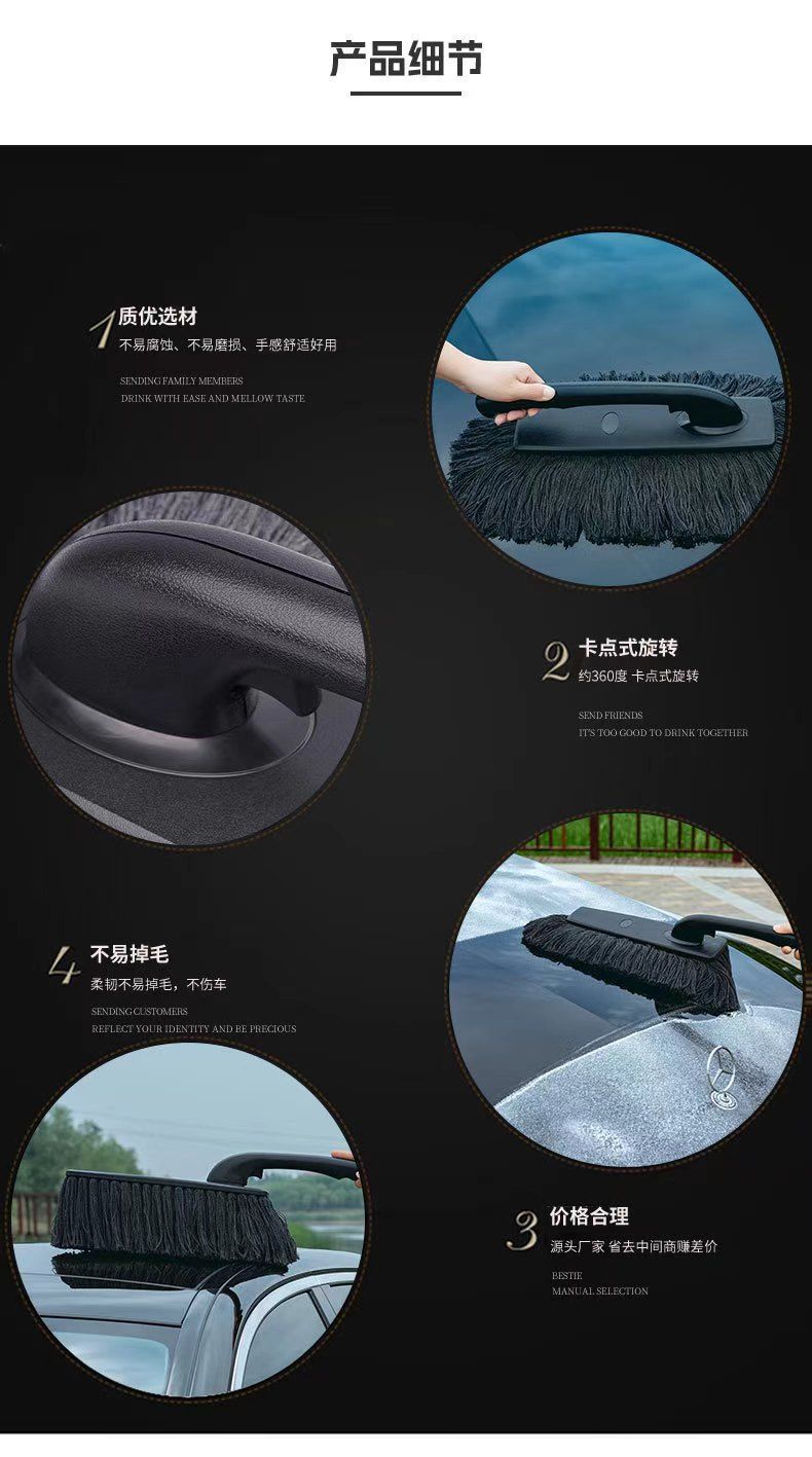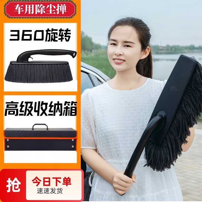 • 360도 회전 오일 딥 자동차 브러시 + 고급 보관함 + 먼지떨이 왁스 + 눈 삽