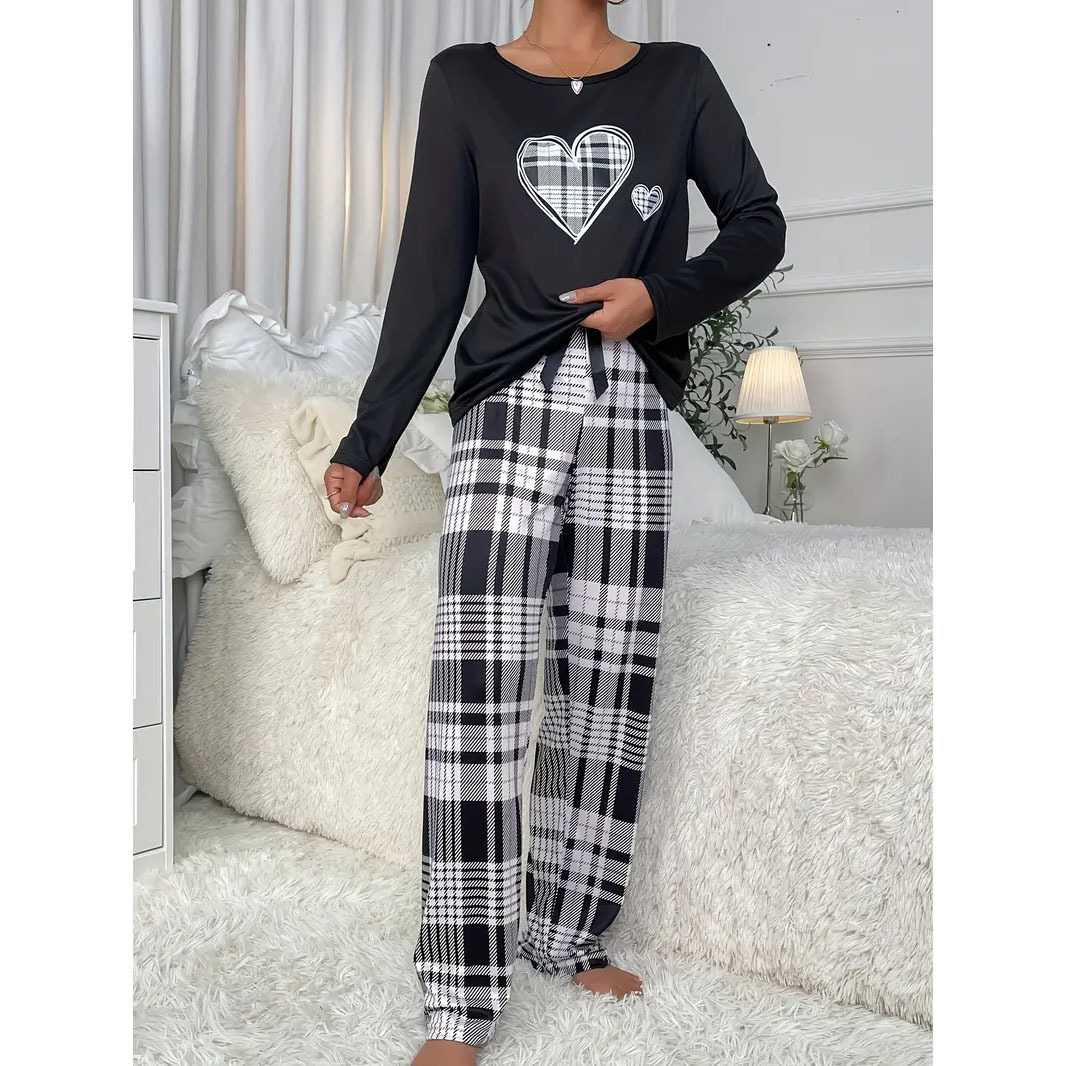 국경을 넘는 캐주얼 러브 레오파드 파자마, 유럽과 미국의 편안한 느슨한 긴팔 여성용 홈 의류 세트 캐주얼 세트스토어 가기