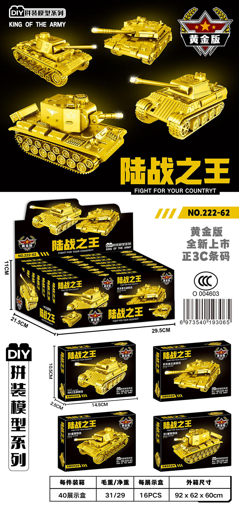 • 육상 전투용 황금 탱크(디스플레이 상자에 16발 촬영)
