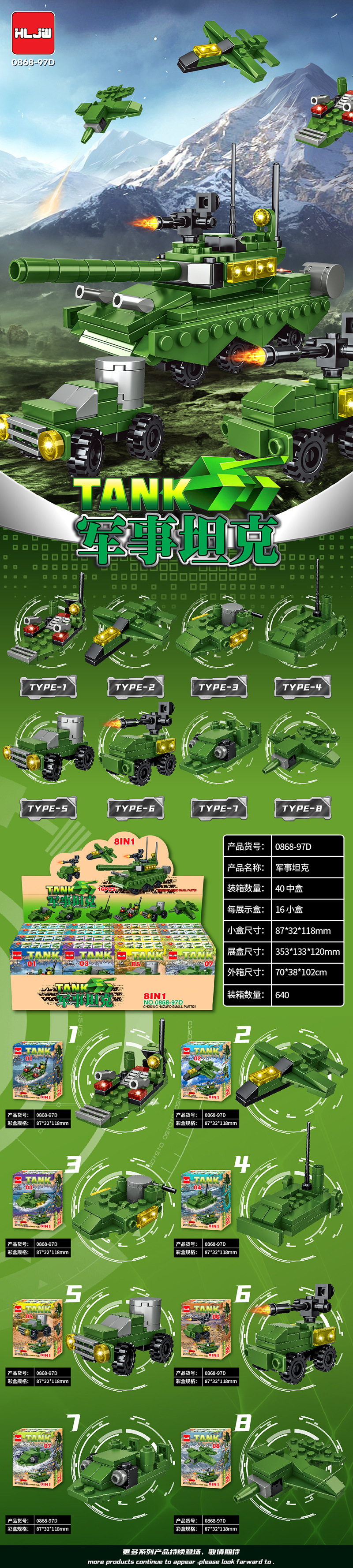 어린이 교육 군사 조립 공동 건물 블록 장난감 DIY 엔지니어링 탱크 조립 모델 선물 스톨 도매