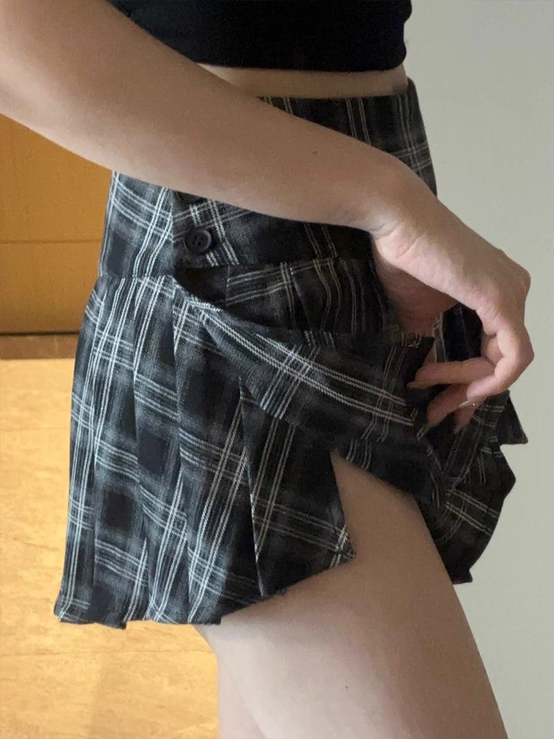 미국 스타일 레트로 격자 무늬 스커트 여성 여름 새로운 스타일 체크 무늬 스커트 뜨거운 소녀 낮은 허리 주름 스커트 짧은 A 라인 스커트스토어 가기