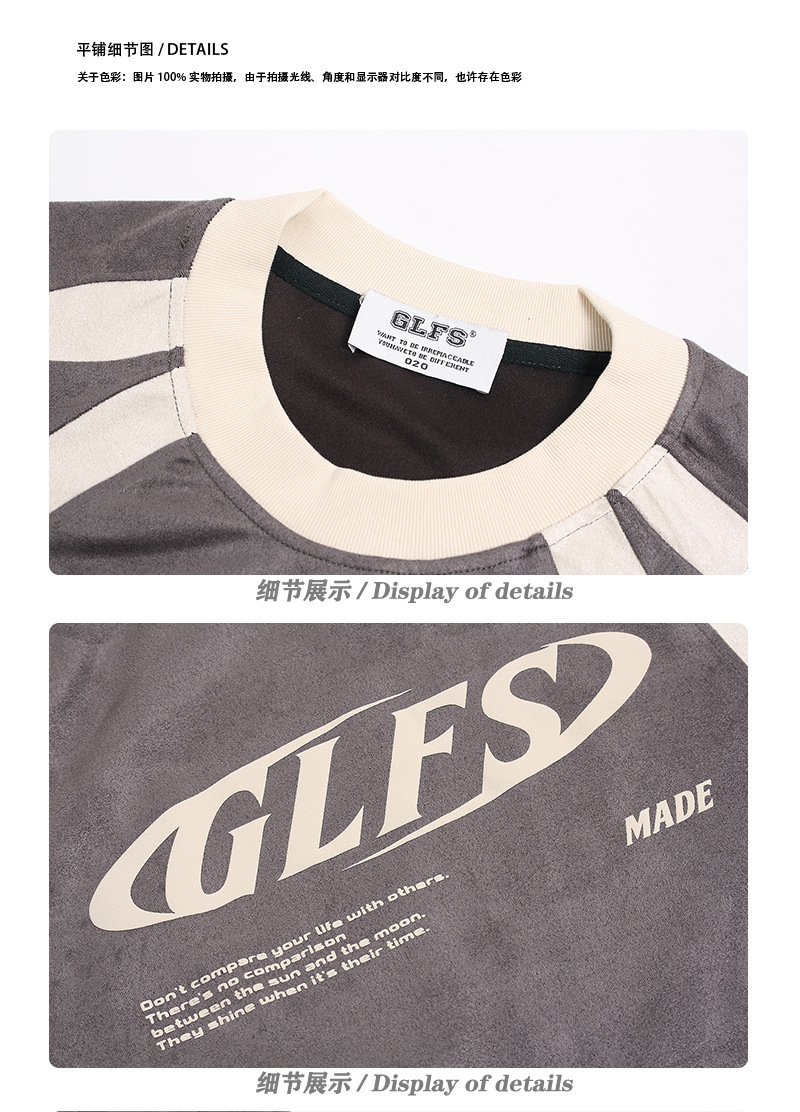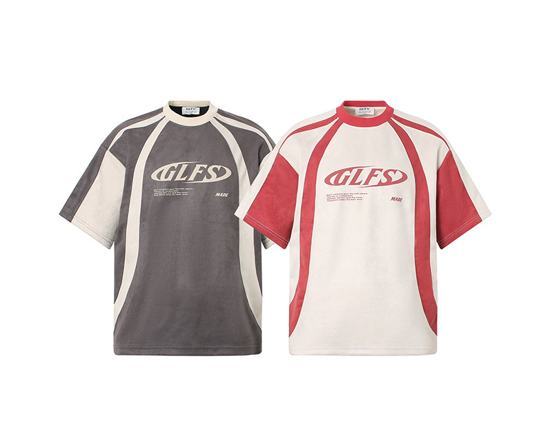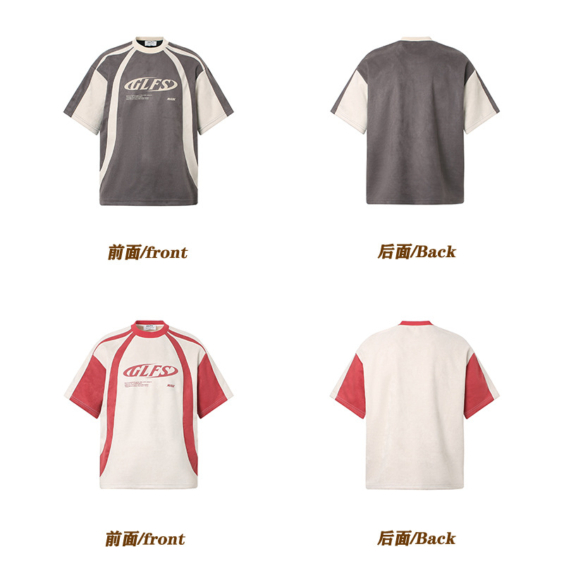 JT963 American Street 2025 여름 편지 높은 감각 디자인 남성 느슨한 구성 스웨이드 반팔 티셔츠스토어 가기