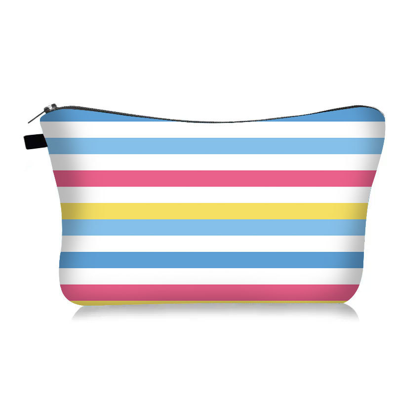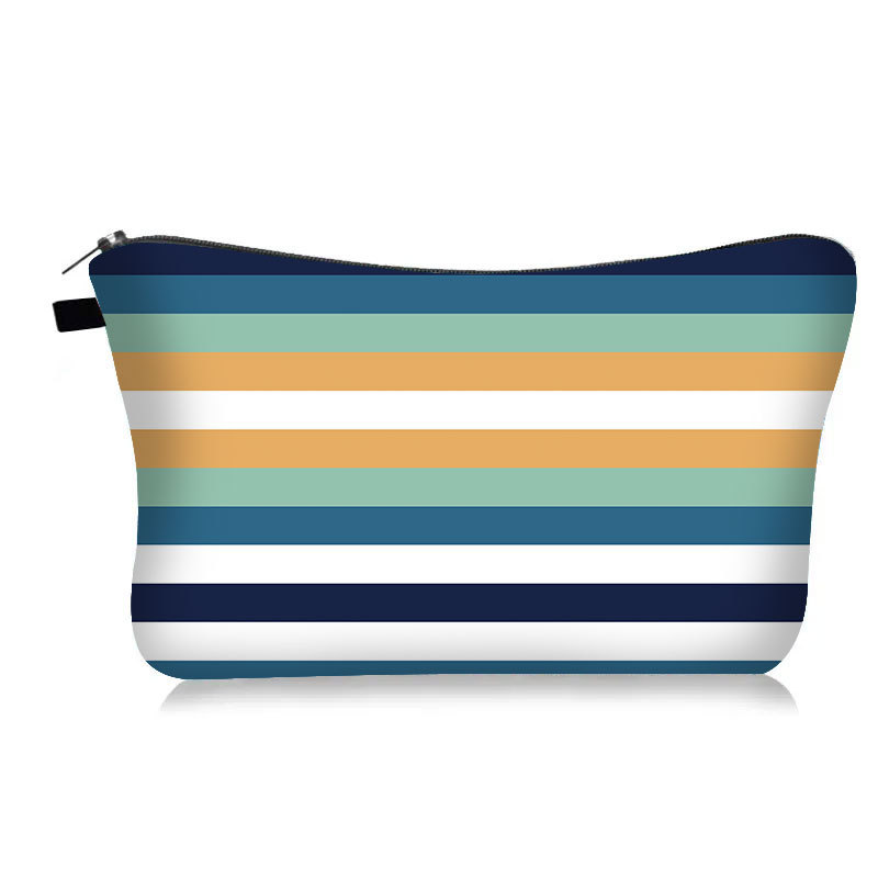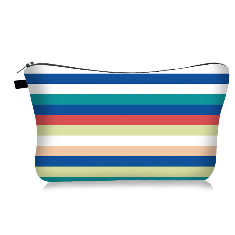 새로운 국경 핫 셀러 스트라이프 메이크업 스토리지 백 간단한 여성용 클러치 백 육각형 인쇄 휴대용 워시 백