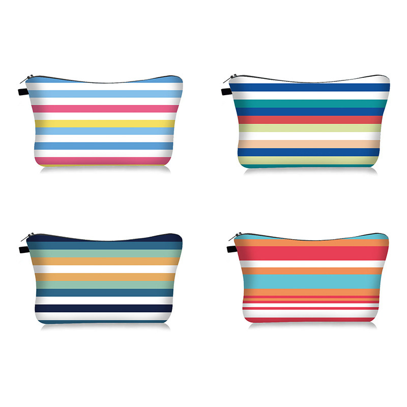 새로운 국경 핫 셀러 스트라이프 메이크업 스토리지 백 간단한 여성용 클러치 백 육각형 인쇄 휴대용 워시 백스토어 가기
