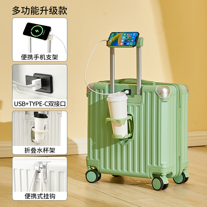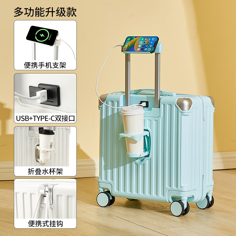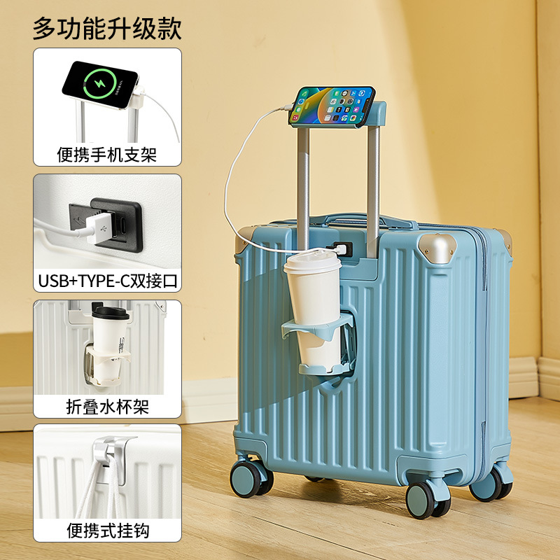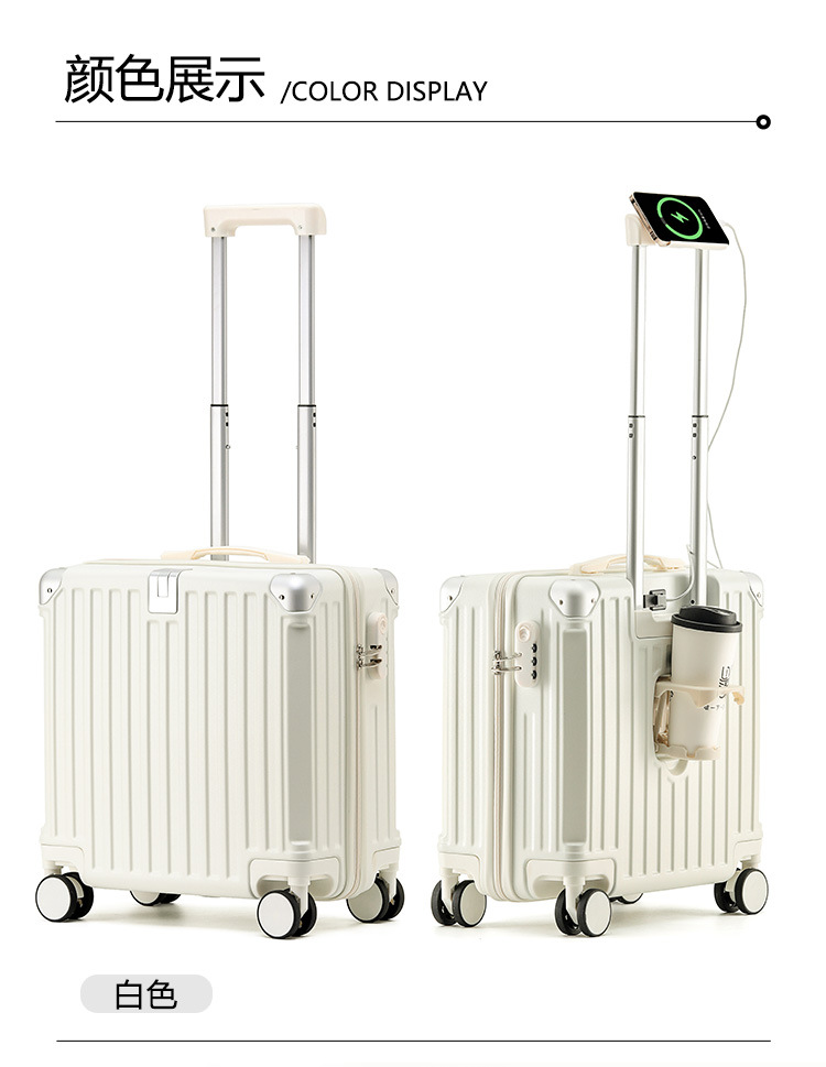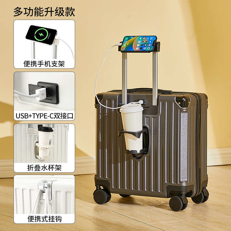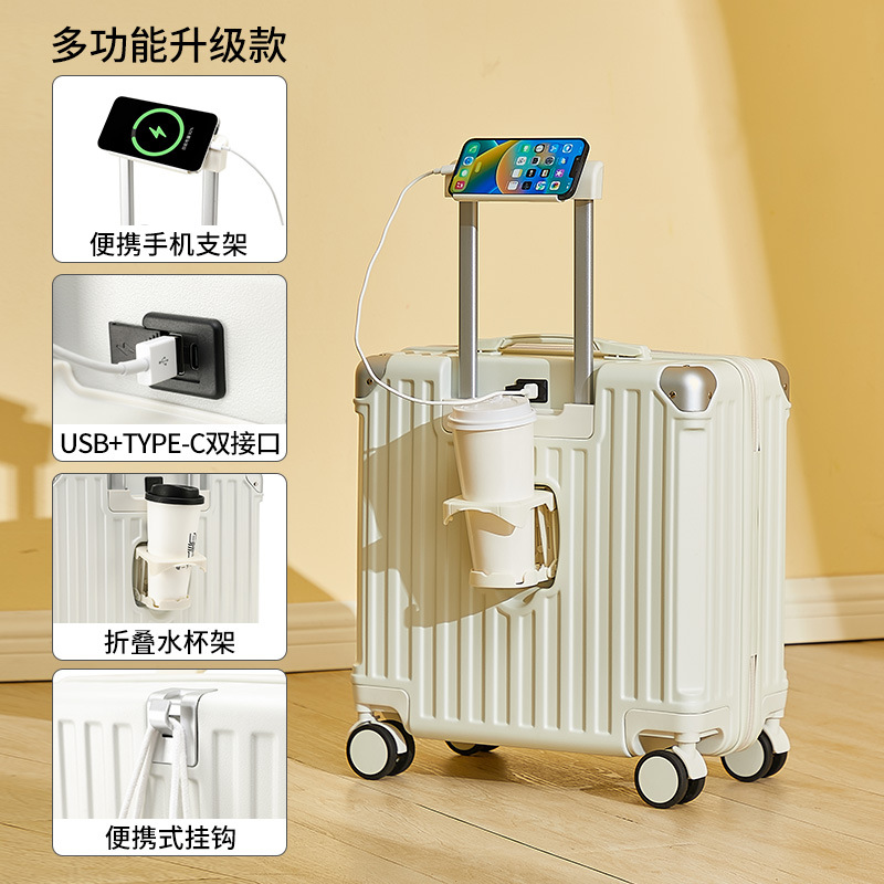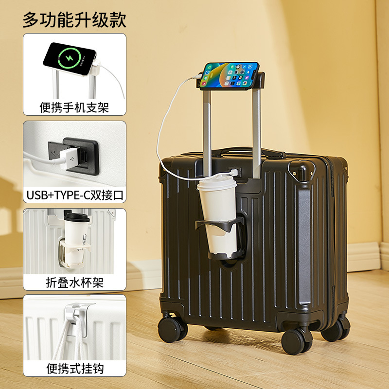 2025 새로운 가방 18inch 남성과 여성을위한 탑승 트롤리 케이스 다기능 가방 초경량 암호 가죽 케이스