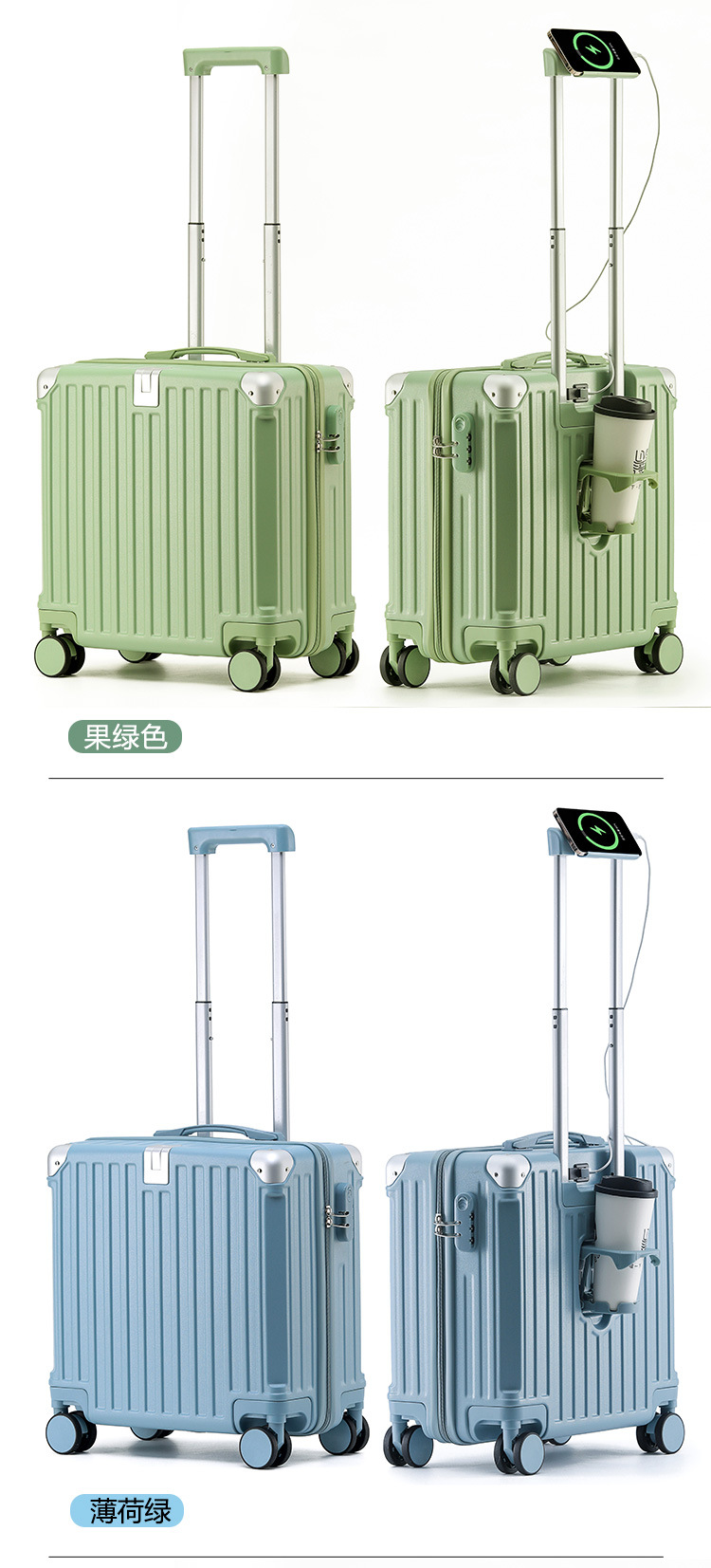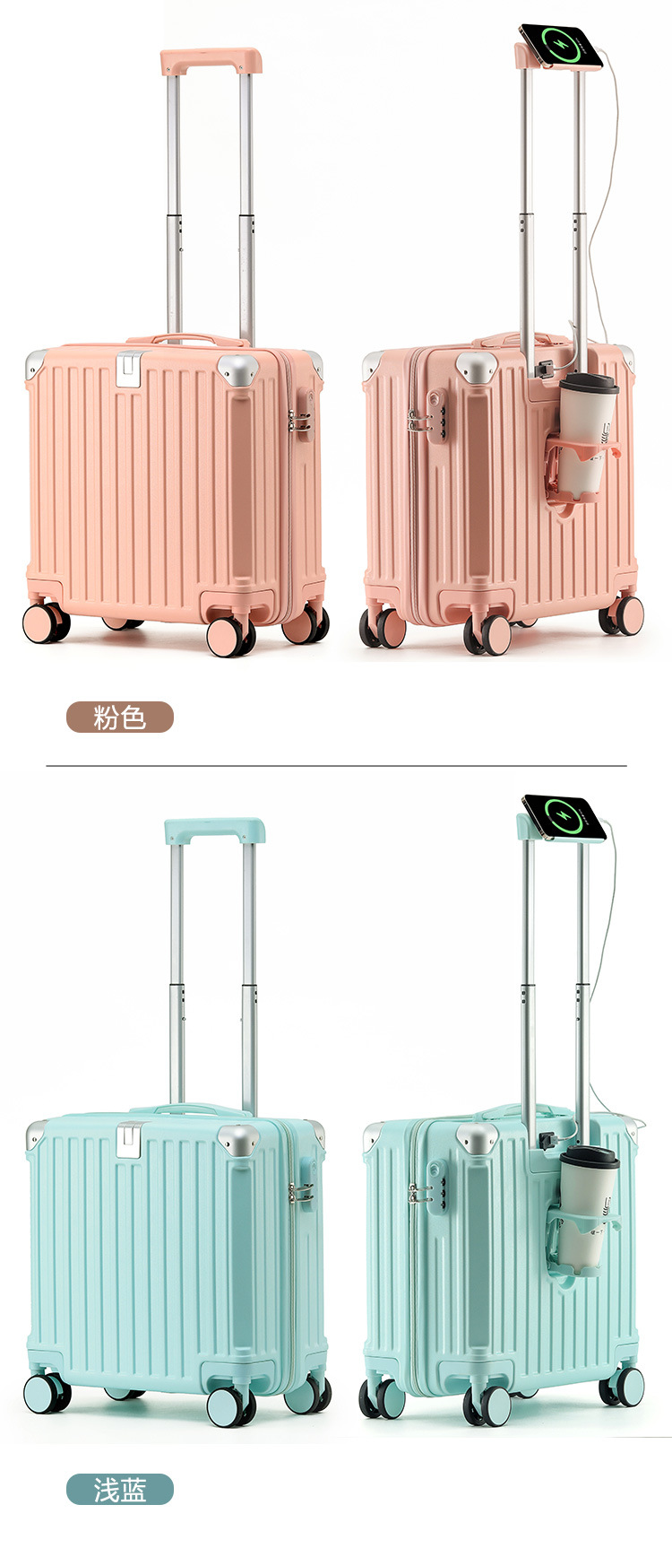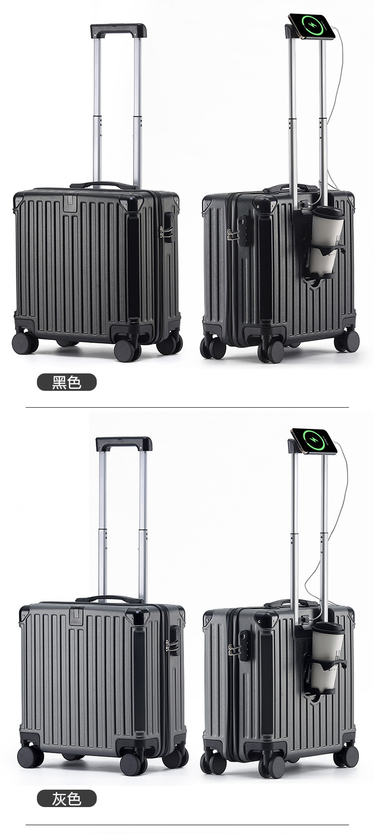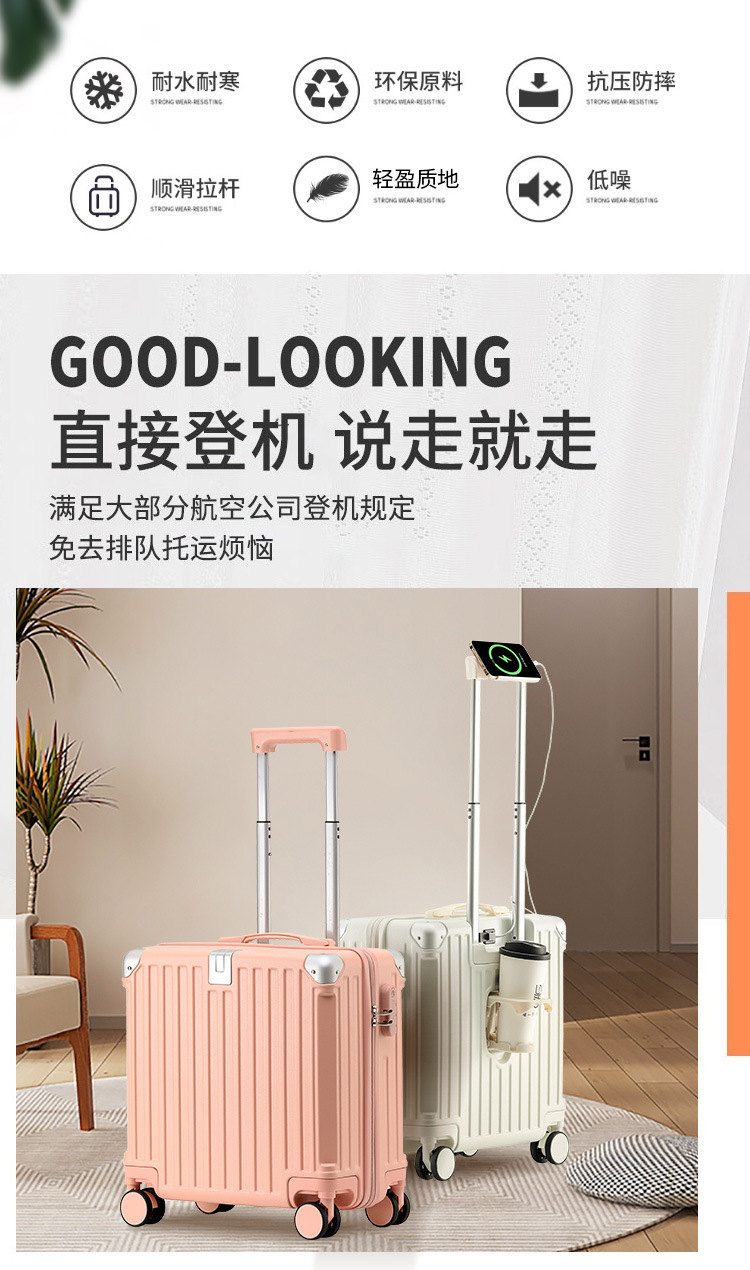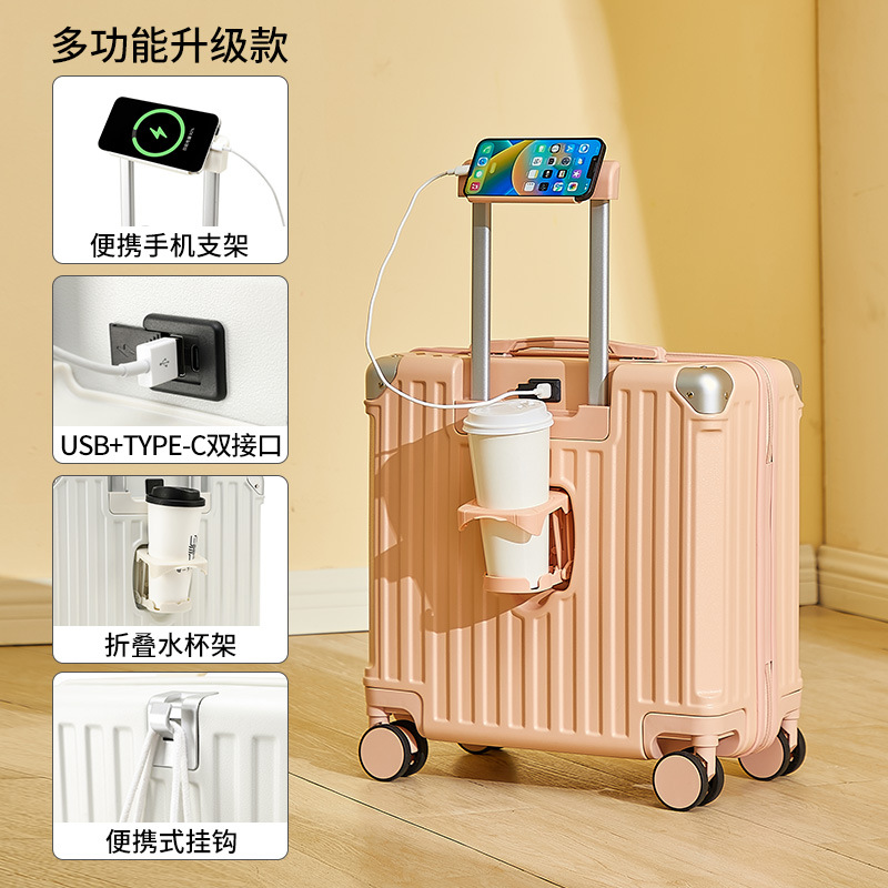 2025 새로운 가방 18inch 남성과 여성을위한 탑승 트롤리 케이스 다기능 가방 초경량 암호 가죽 케이스
