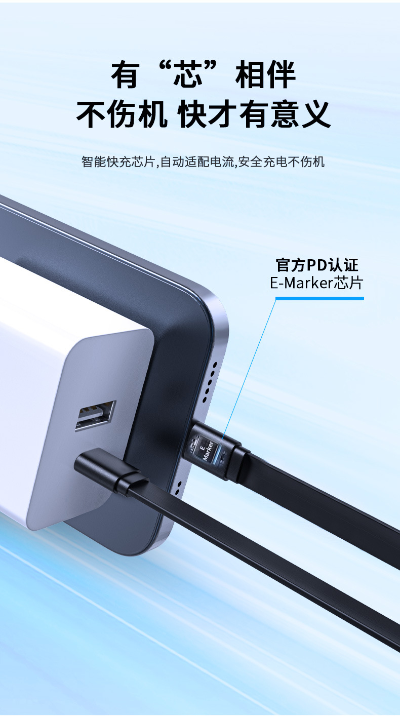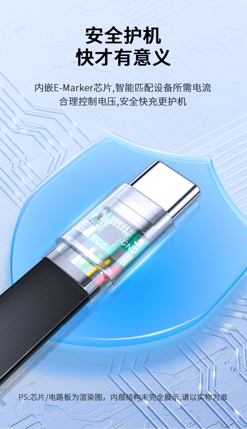 • [스트레이트 헤드] Emarker 칩을 탑재한 5코어 PD100W 고속 충전