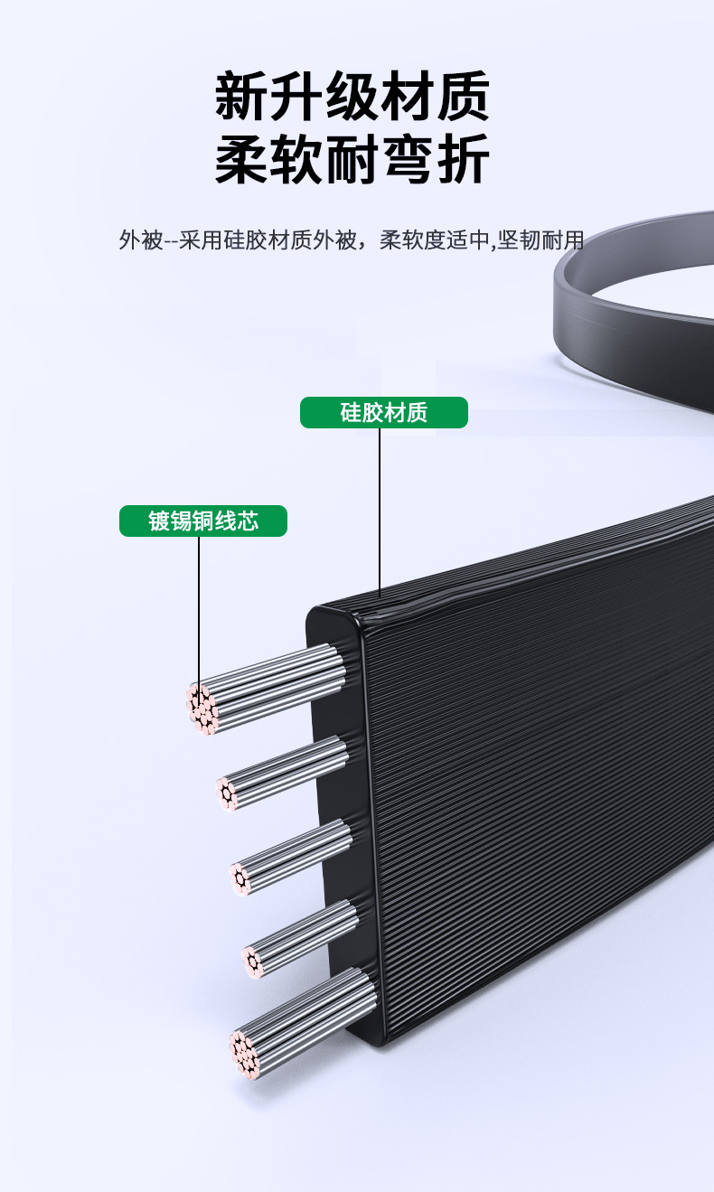 • 고속 충전 66W 5코어 Type-c 수-수 플랫 케이블[더블 엘보]
