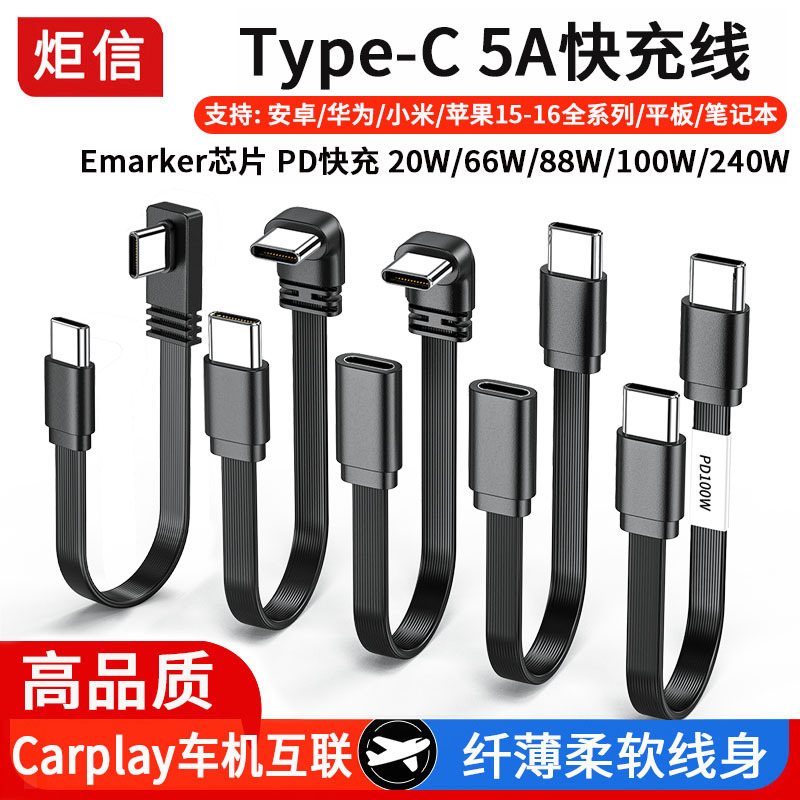 소프트 듀얼 타입-c 데이터 케이블 팔꿈치 안드로이드 플랫 자동차 충전기 Bao 100w 초고속 충전 라인 짧은 라인
