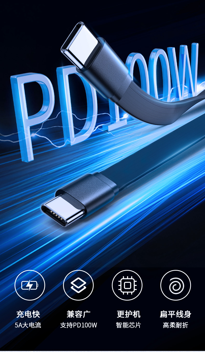 소프트 듀얼 타입-c 데이터 케이블 팔꿈치 안드로이드 플랫 자동차 충전기 Bao 100w 초고속 충전 라인 짧은 라인스토어 가기