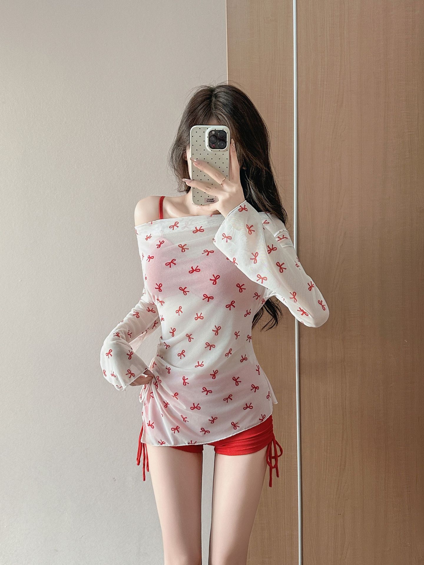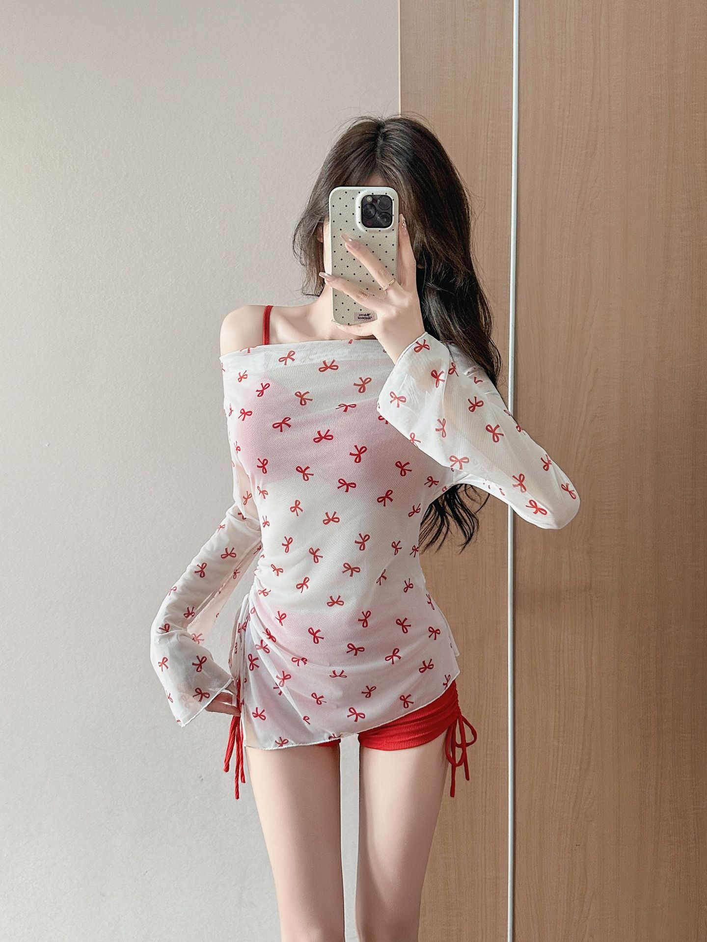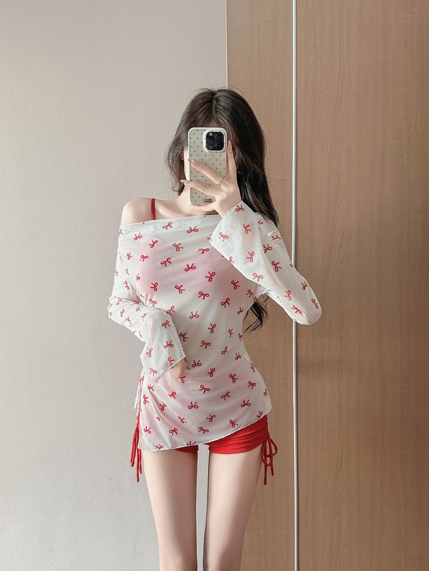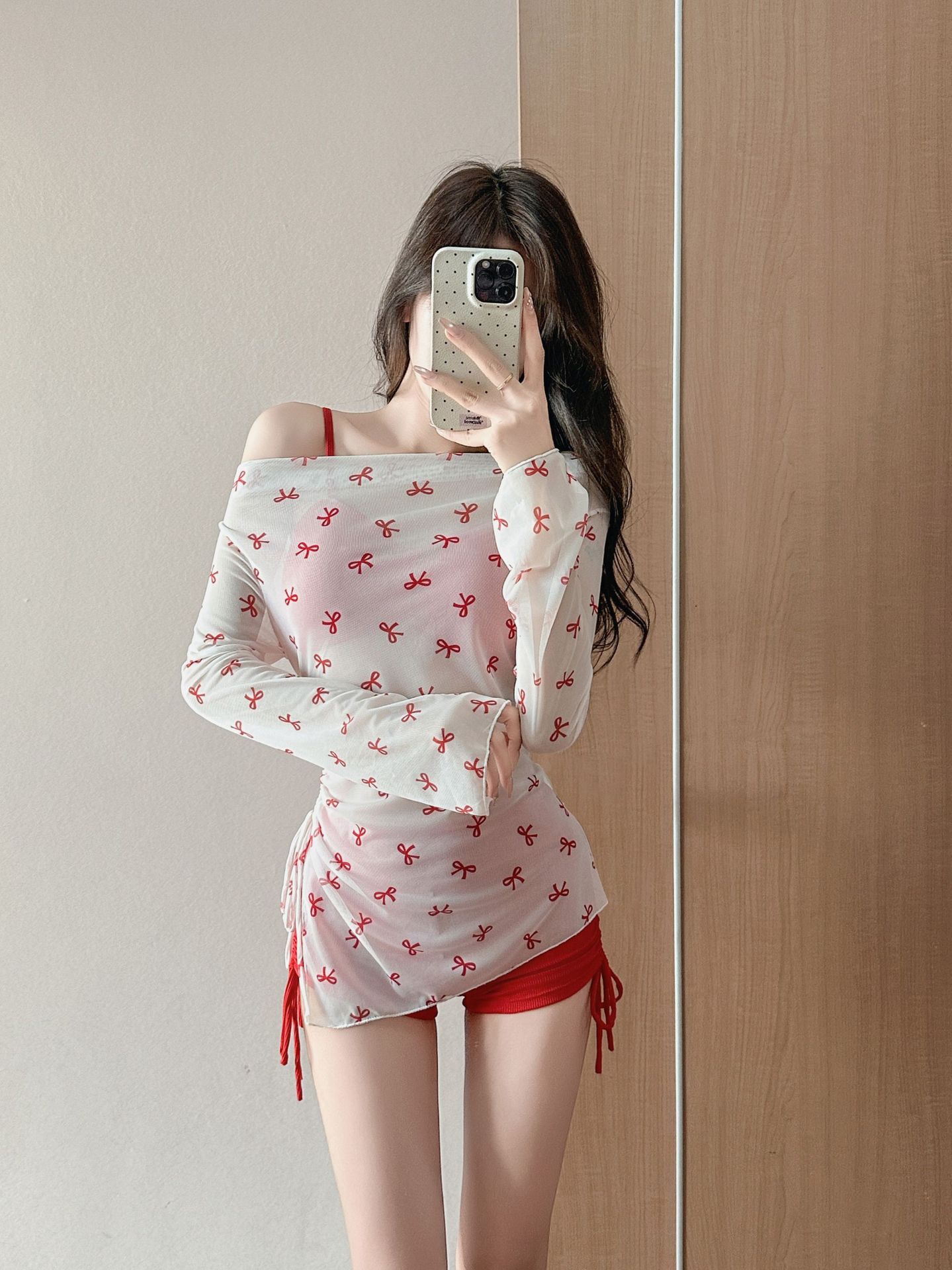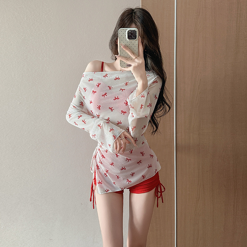 수영복 여성의 섹시한 순수한 욕망 스파이스 소녀 긴 소매 가방 비키니 분할 3 피스 세트 모임 홀리데이 스파