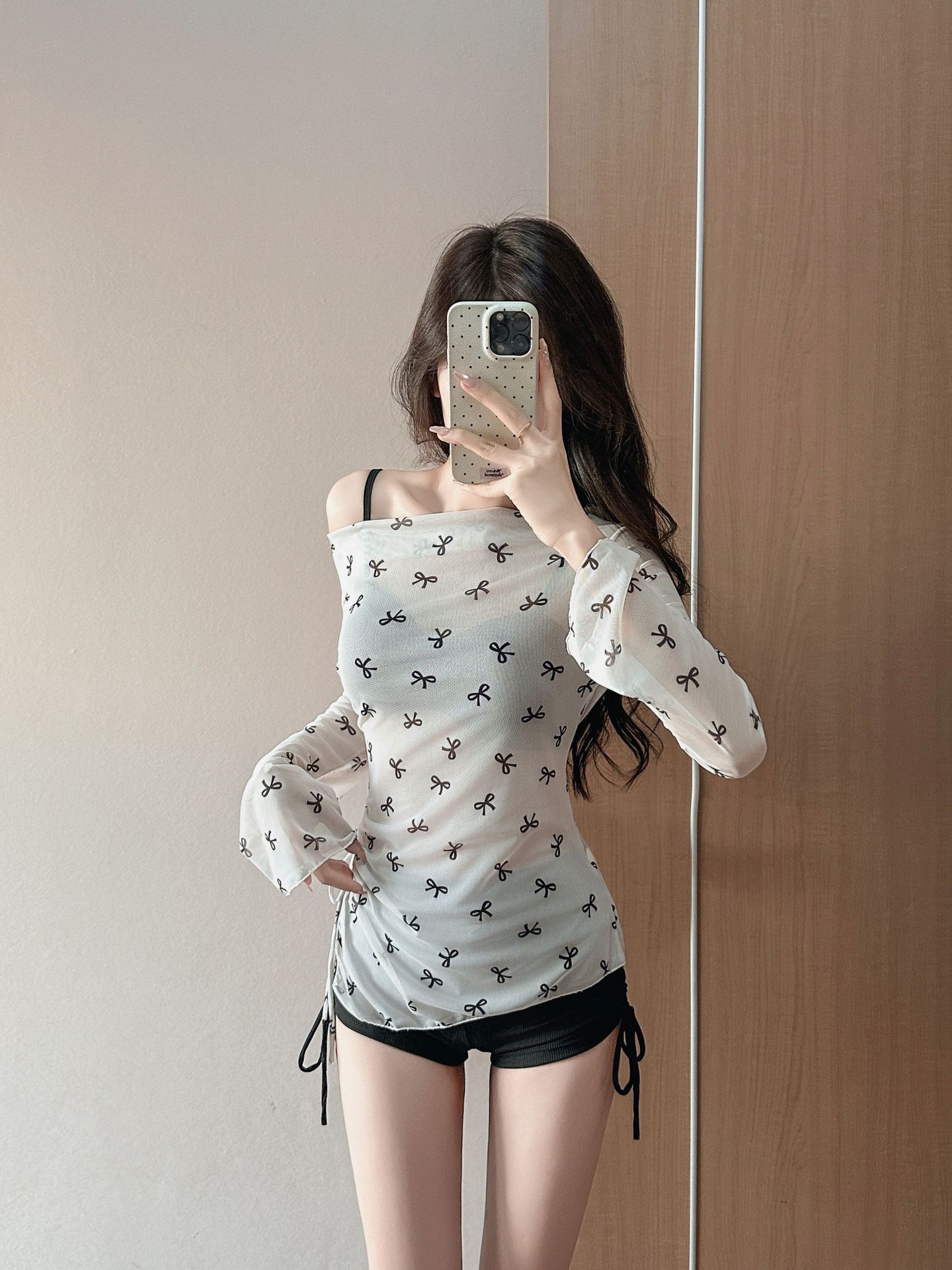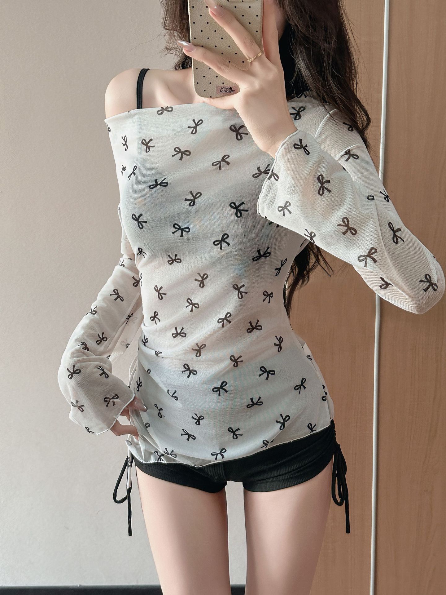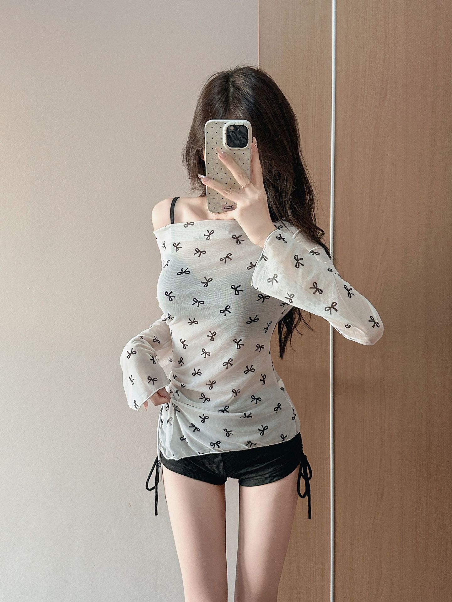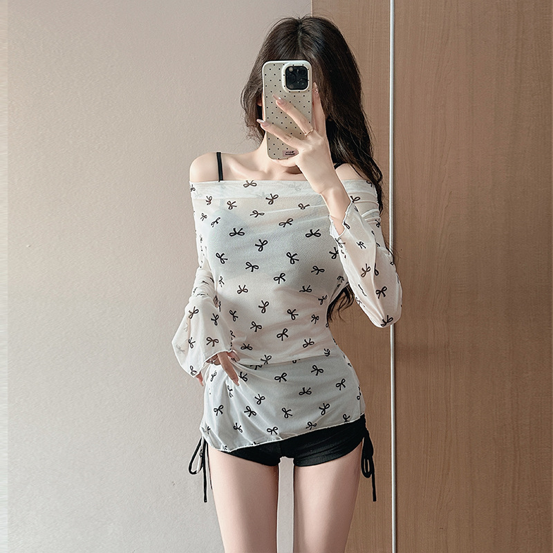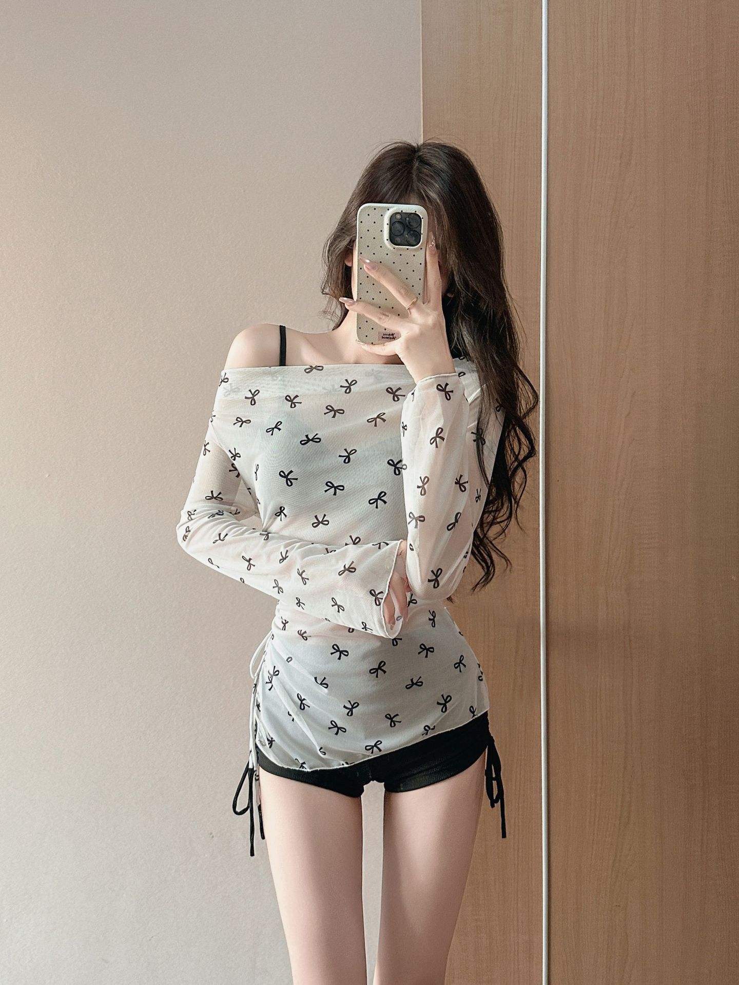 수영복 여성의 섹시한 순수한 욕망 스파이스 소녀 긴 소매 가방 비키니 분할 3 피스 세트 모임 홀리데이 스파
