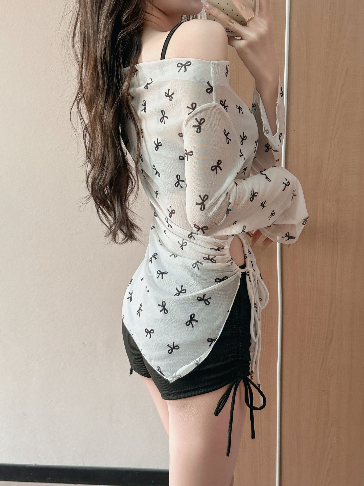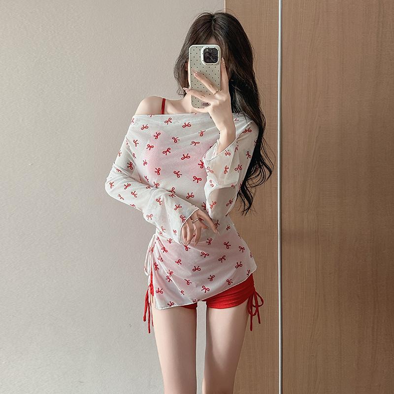 수영복 여성의 섹시한 순수한 욕망 스파이스 소녀 긴 소매 가방 비키니 분할 3 피스 세트 모임 홀리데이 스파스토어 가기