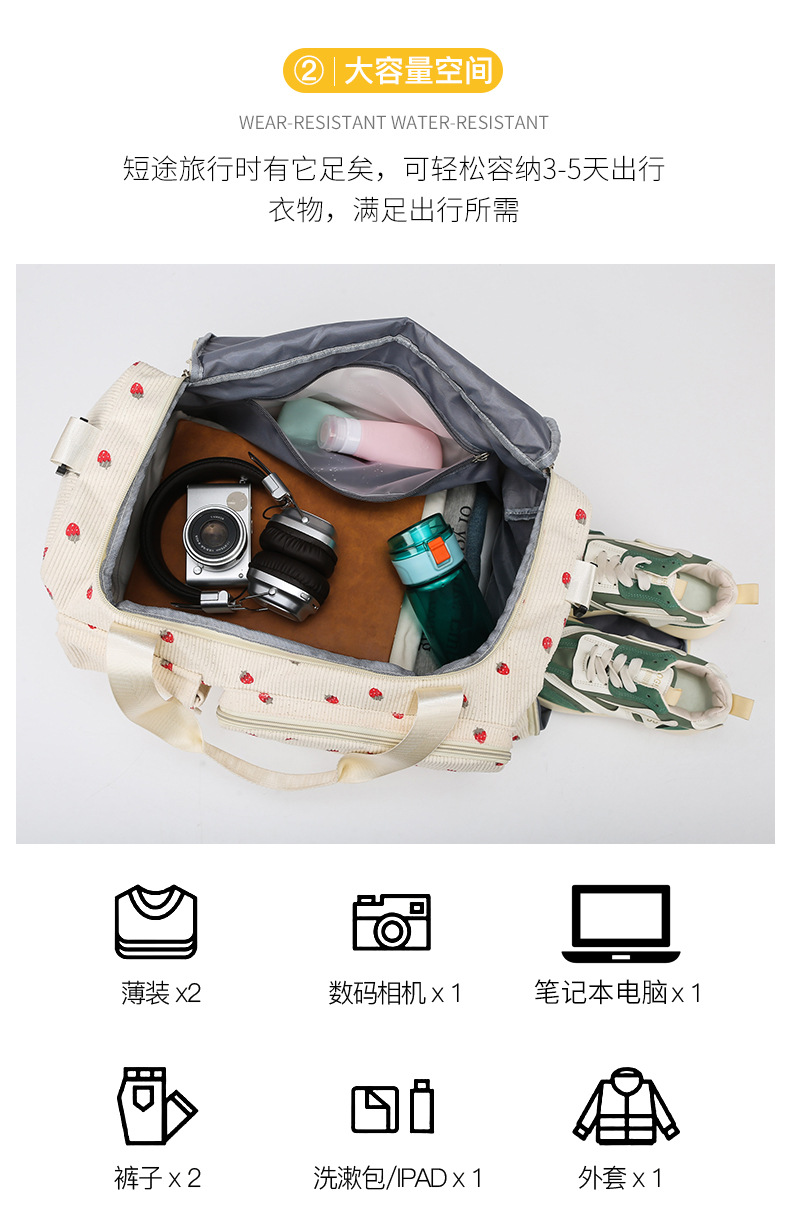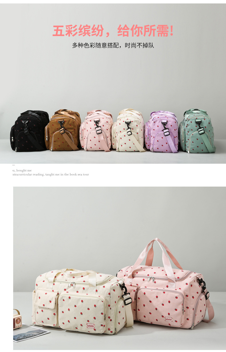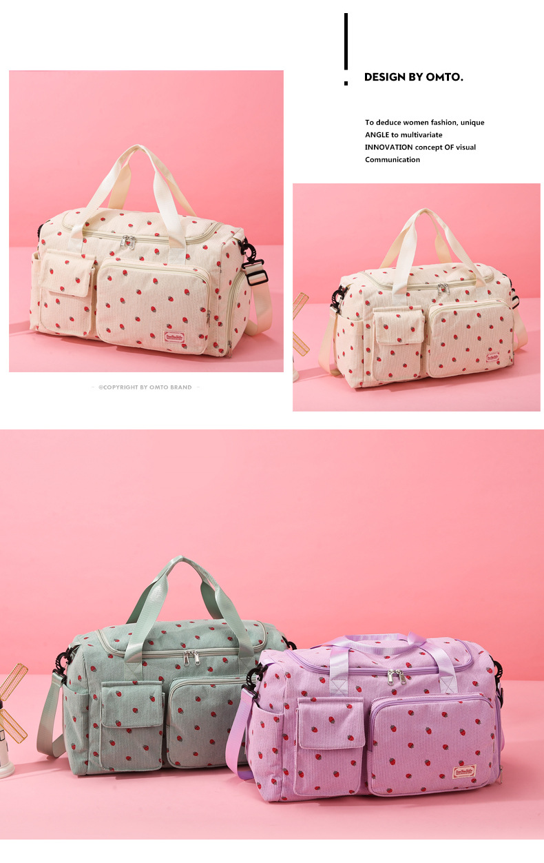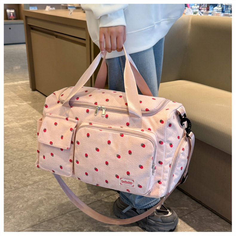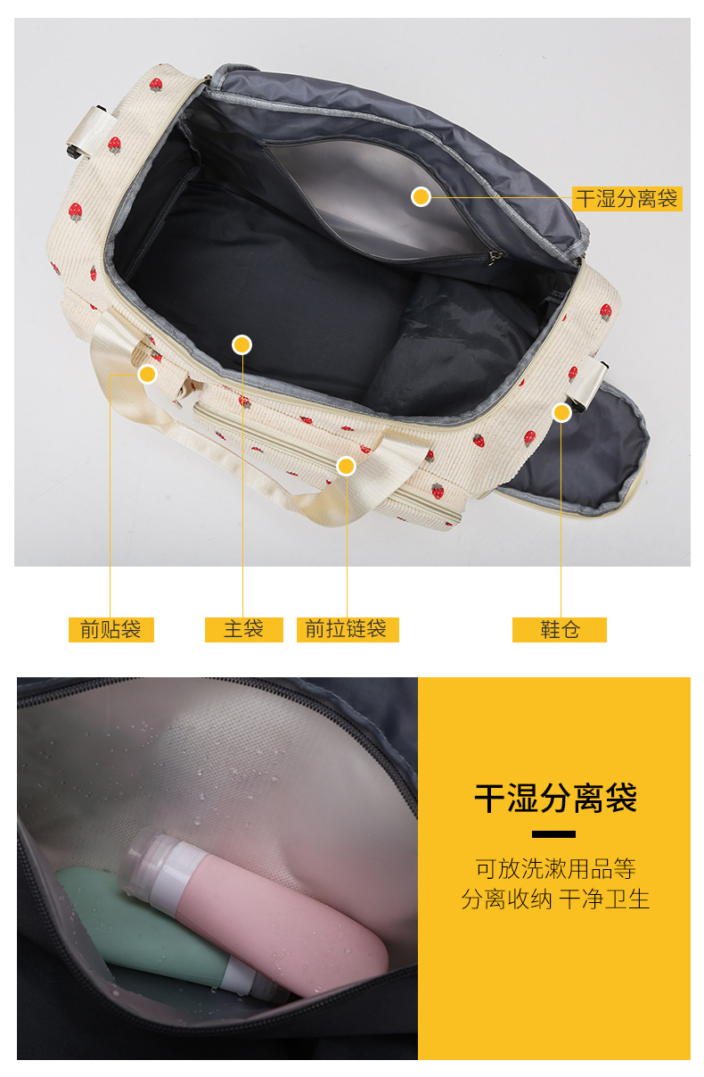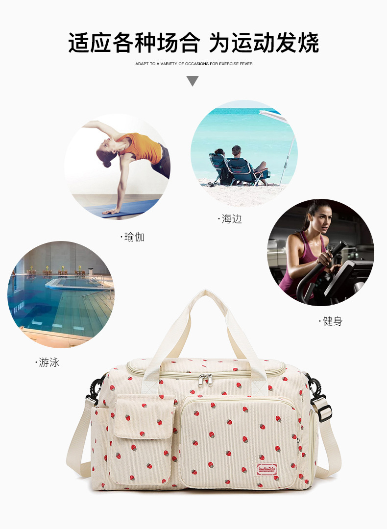 휴대용 딸기 여행 가방 대용량 더플 백 건조하고 젖은 별도의 체육관 가방 독립 신발 보관 가방
