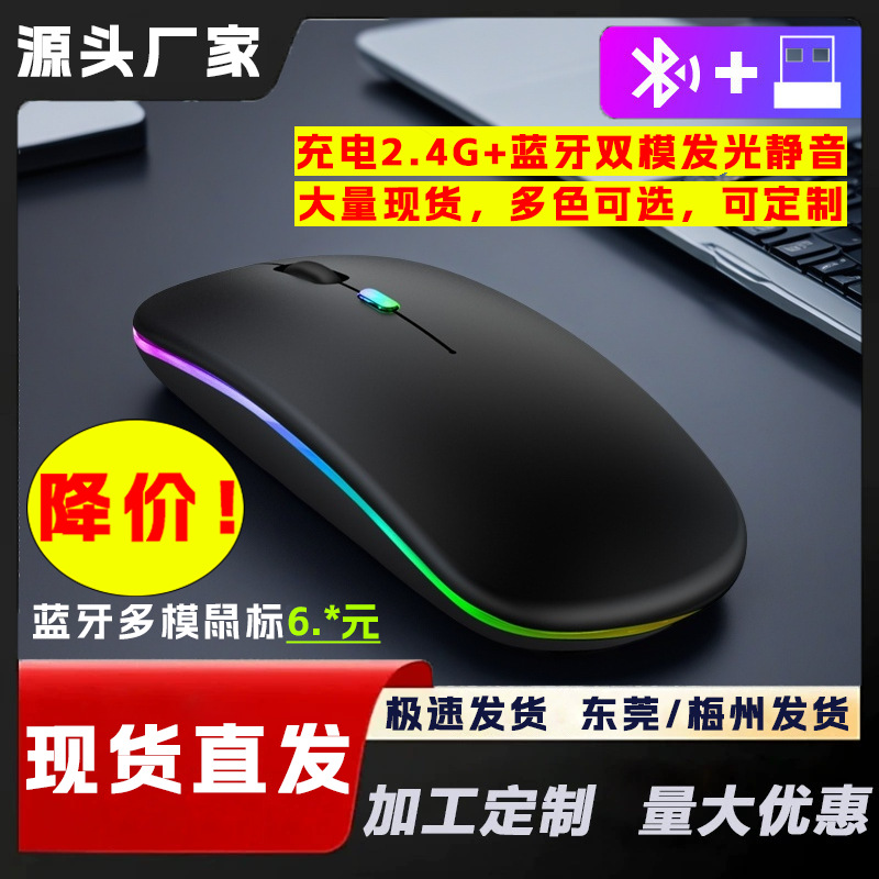 국경 간 새로운 블루투스 듀얼 모드 무선 마우스 2.4G 노트북 충전식 발광 음소거 사무실 마우스스토어 가기