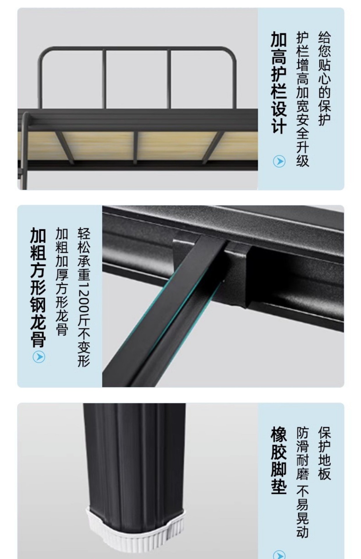 • 1.2m 와이드 매트 블랙 4인용 사다리 모델 - 침대판 포함