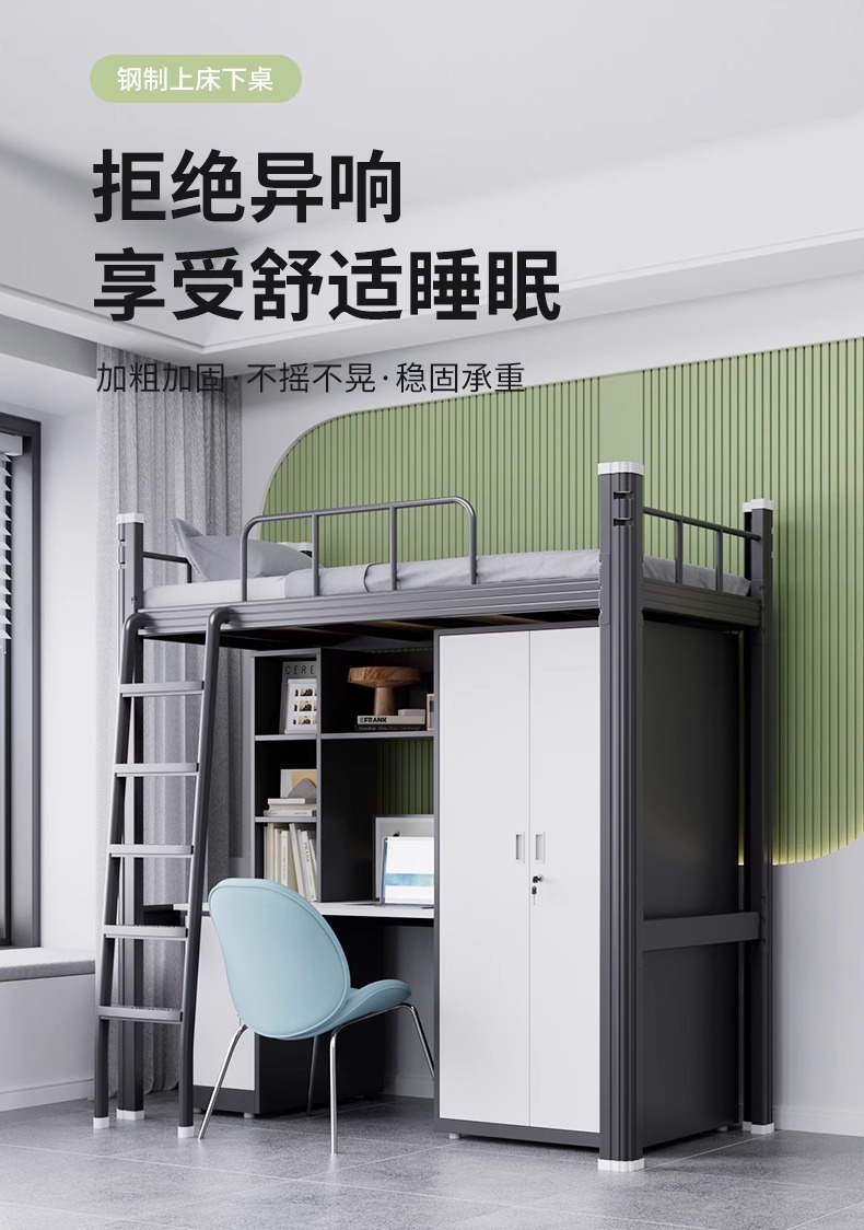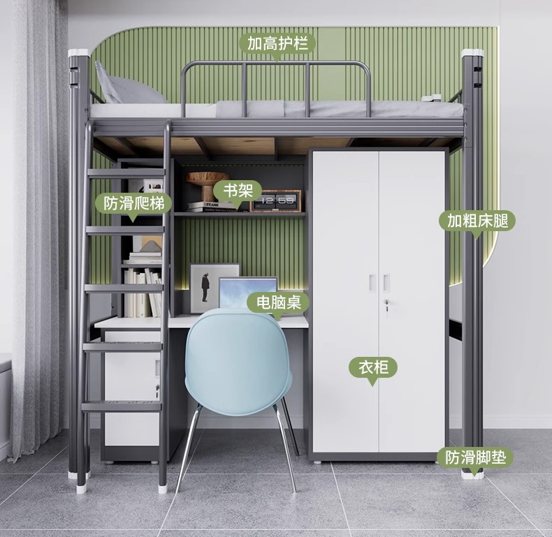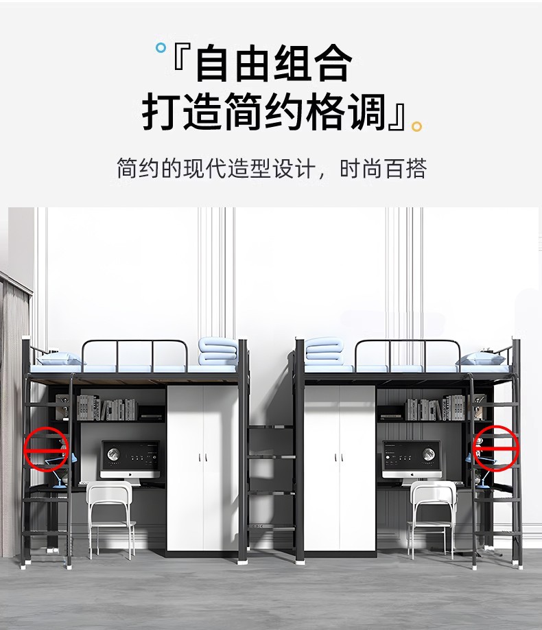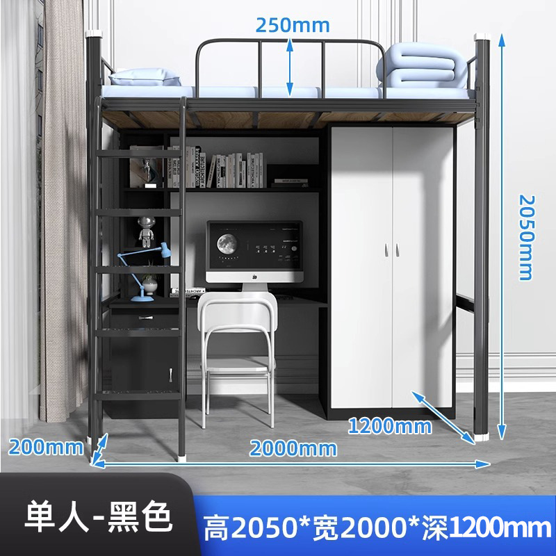 침대 낮은 테이블 책장 통합 조합 철 프레임 침대 더블 레이어 대학생 침대 기숙사 강철 높고 낮은 학교 아파트 침대스토어 가기