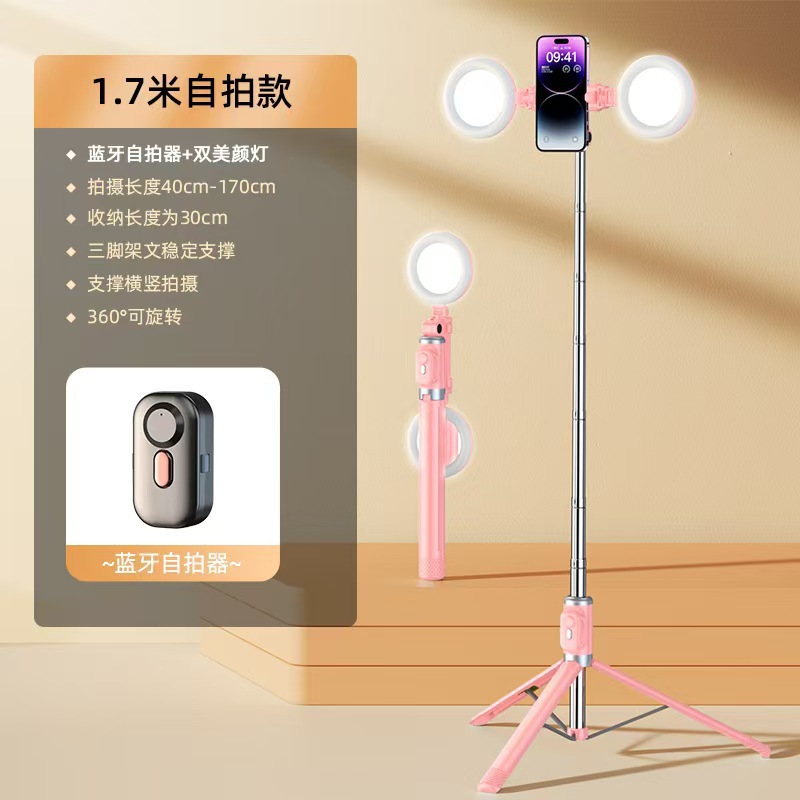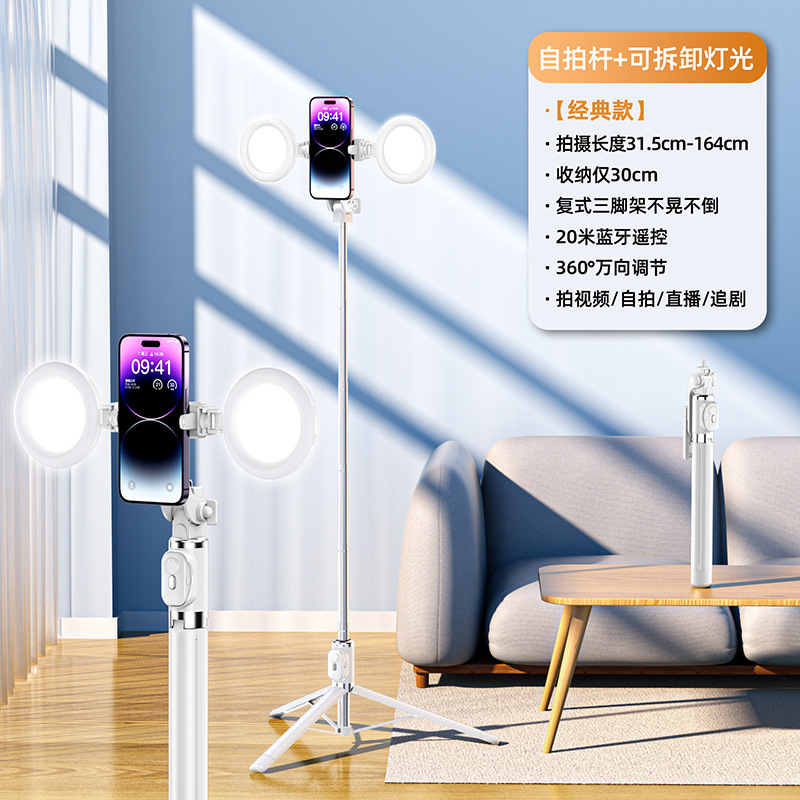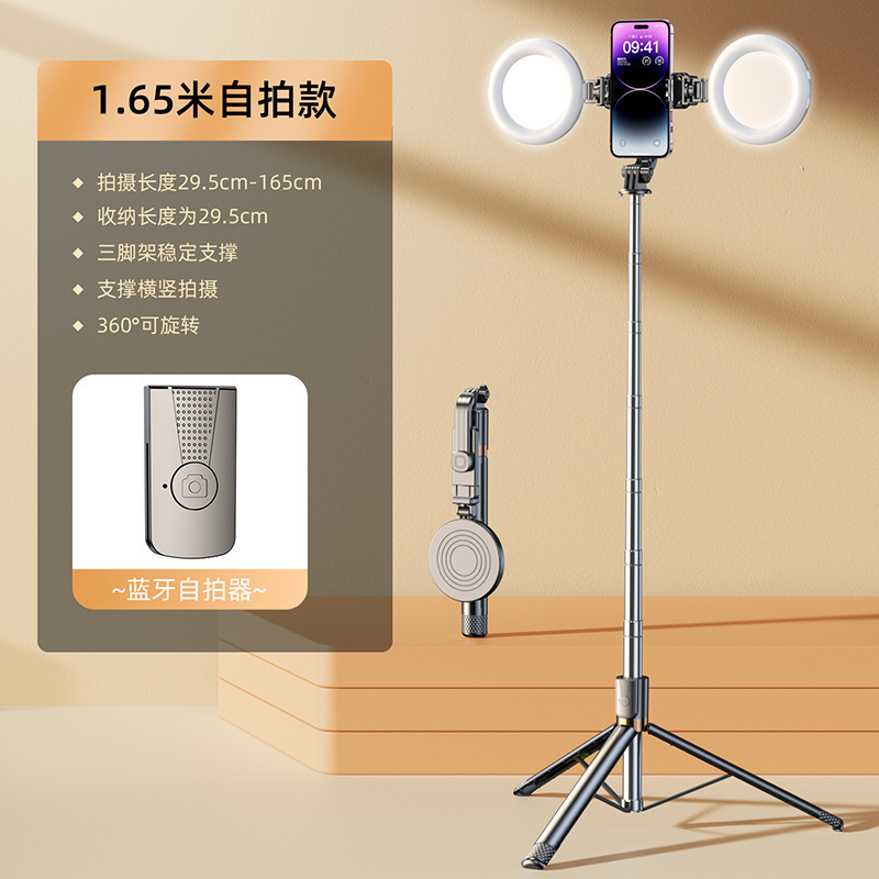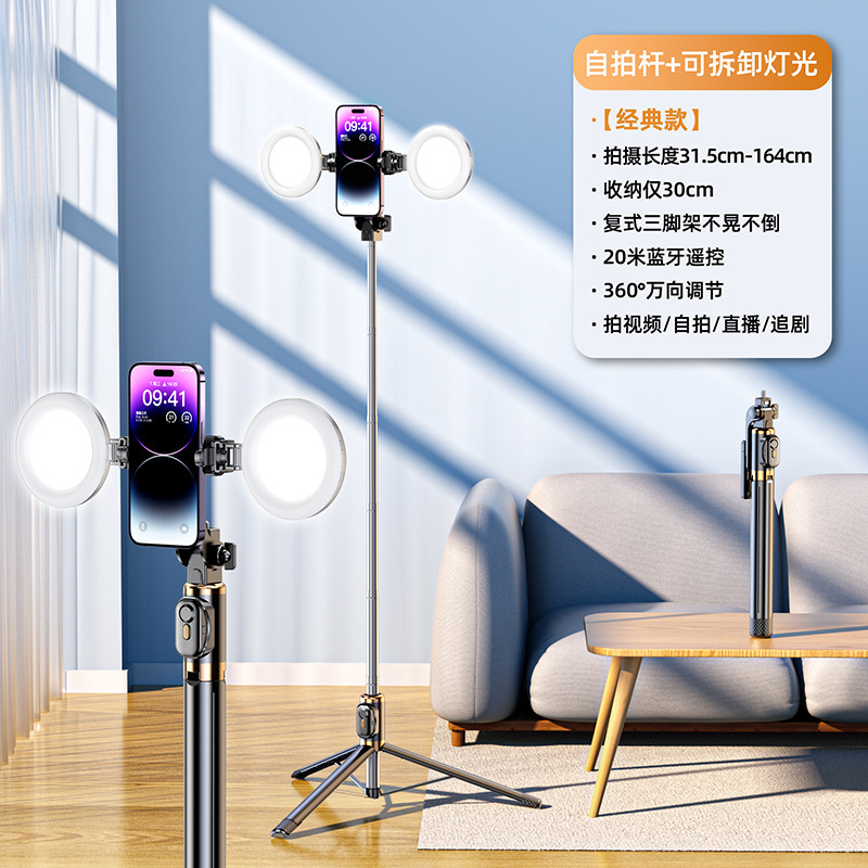 • [업그레이드된 듀플렉스 킬 강화 4각 + 충전 블루투스 리모컨] 알루미늄 합금 슈퍼 미니 셀카봉 + 뷰티 듀얼 헤드라이트