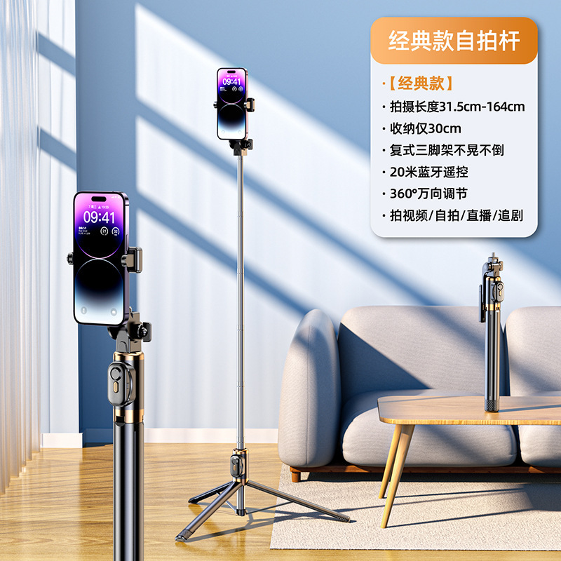 국경 다기능 미니 휴대 전화 카메라 아티팩트 블루투스 셀카 스틱 여행 휴대용 360 회전 바닥 스탠드