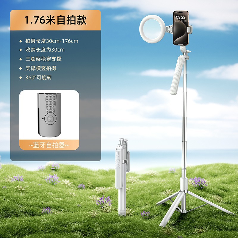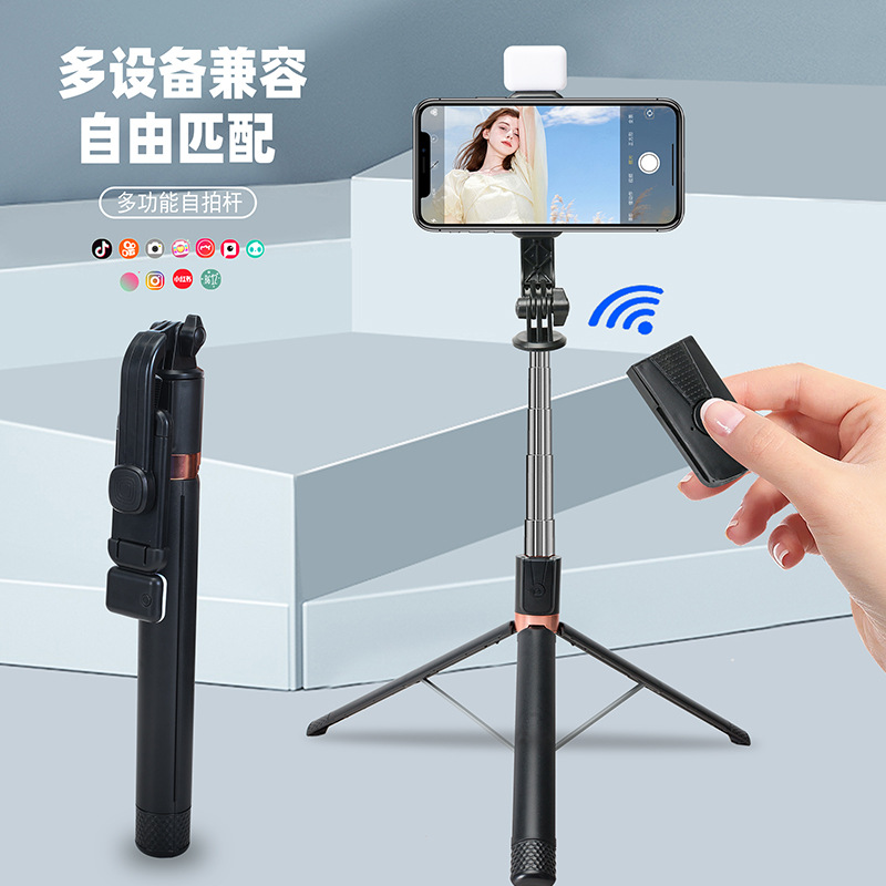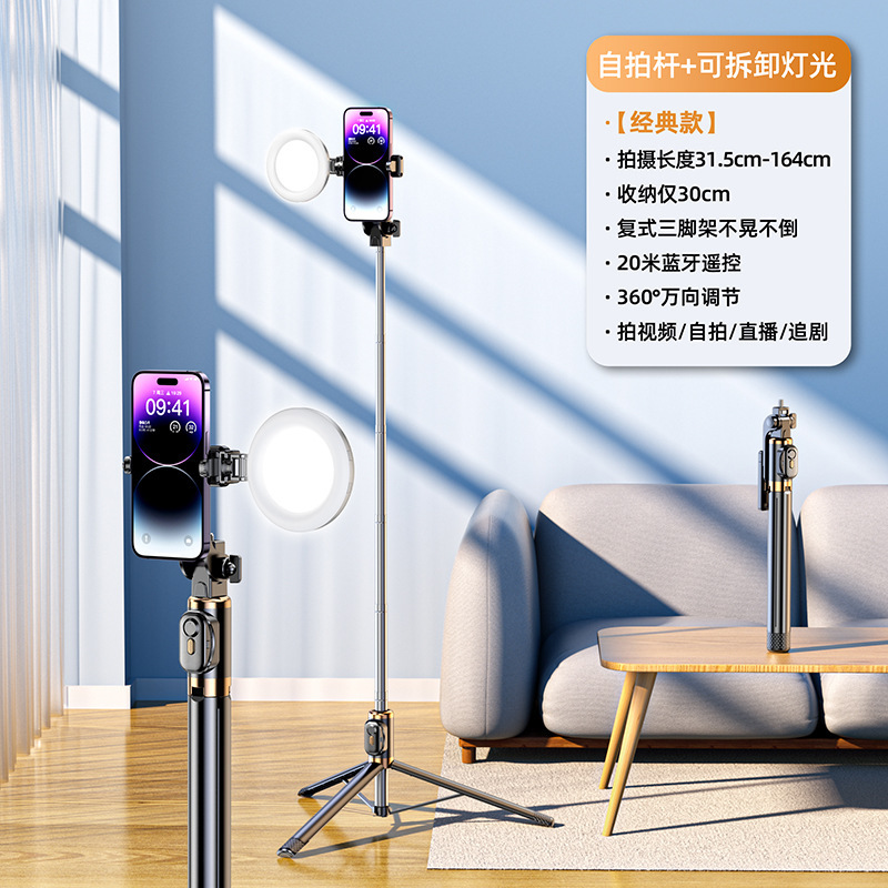 • [업그레이드된 듀플렉스 킬 강화 4각 + 충전 블루투스 리모컨] 알루미늄 합금 슈퍼 미니 셀카봉 + 뷰티 싱글 헤드라이트