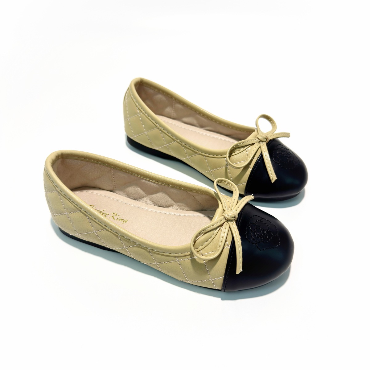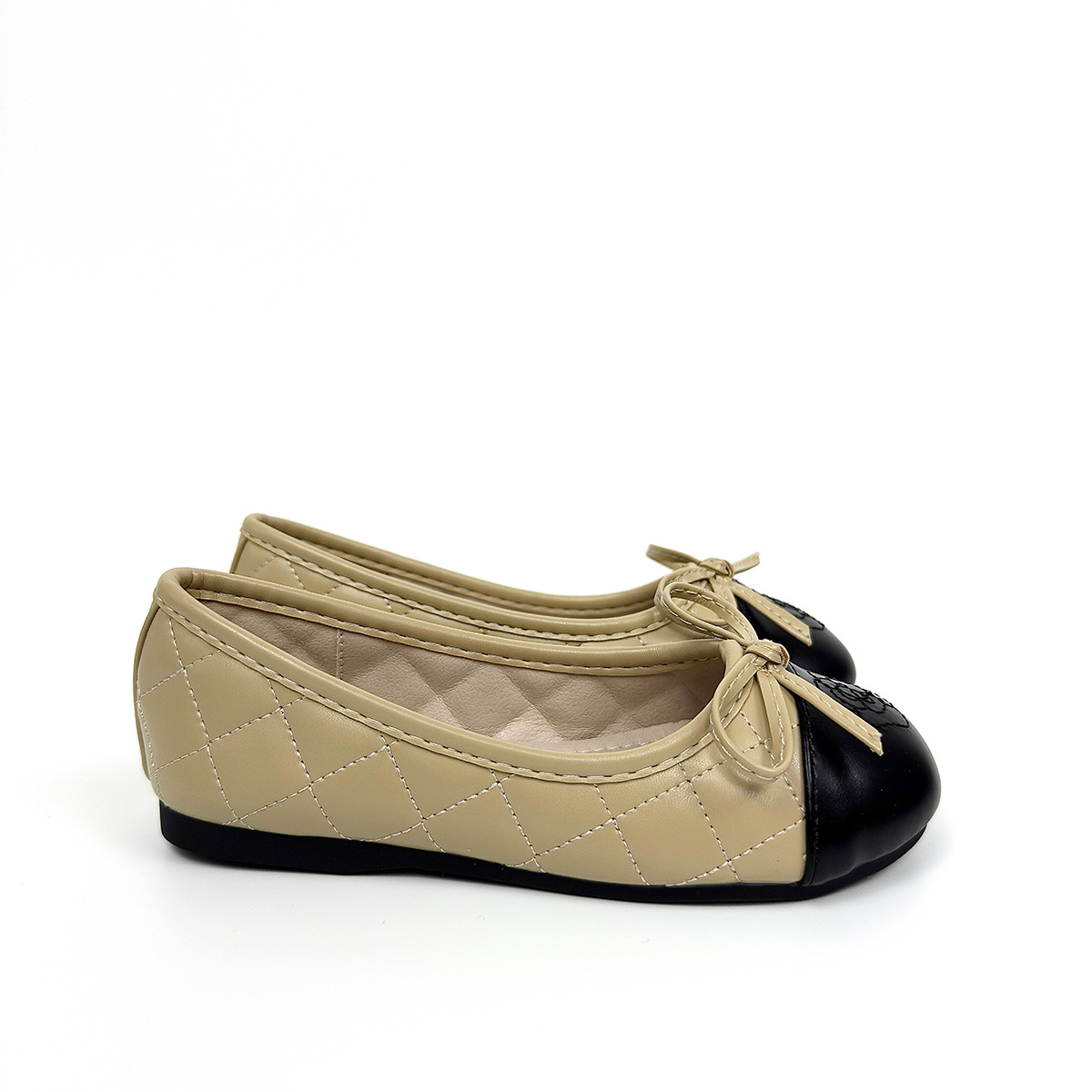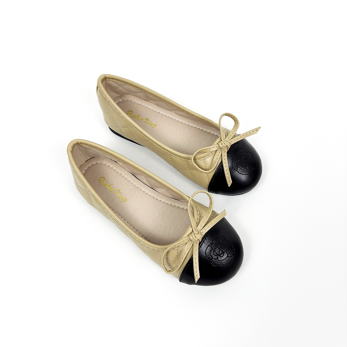 어린이 가죽 신발 부드러운 밑창 소녀 플랫 신발 샤넬 스타일 콩 신발 활 컬러 블록 얕은 입 캐주얼 펌프