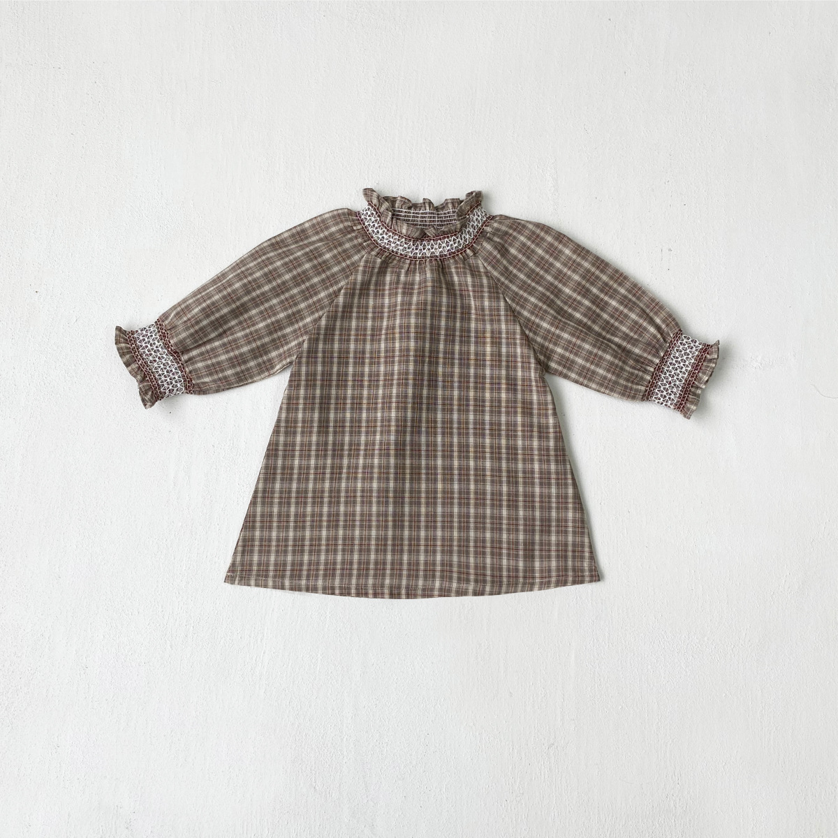 소녀의 봄 원피스 아기 소녀의 모리 스타일 빈티지 격자 무늬 원피스 꽃 소매 칼라 공주 원피스 공 긴 원피스