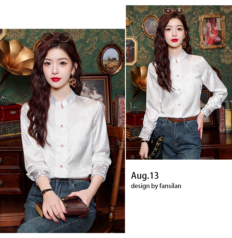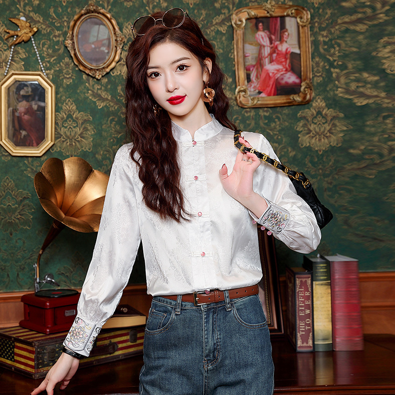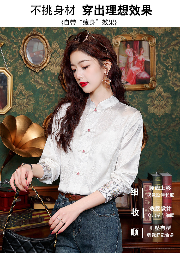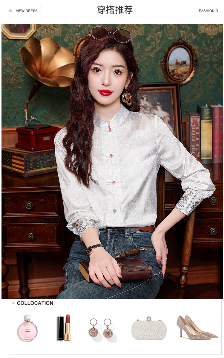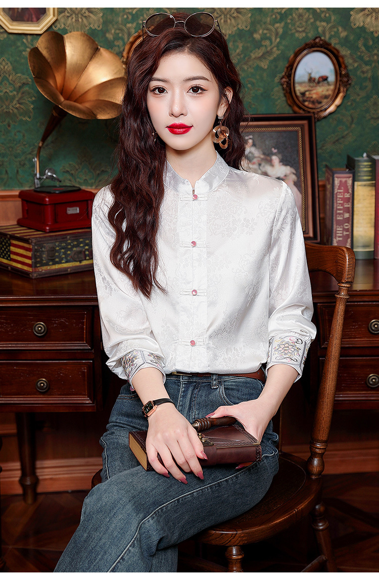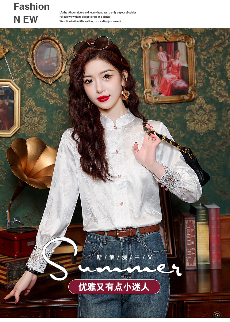 쉬폰 말머리 스커트 여름 탑 2025 새로운 패션 셔츠 여성 의류 중국 스타일 바닥 셔츠 자수 내부스토어 가기