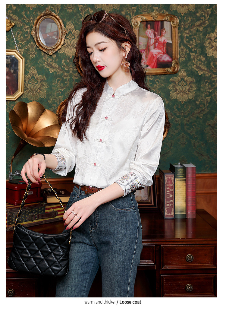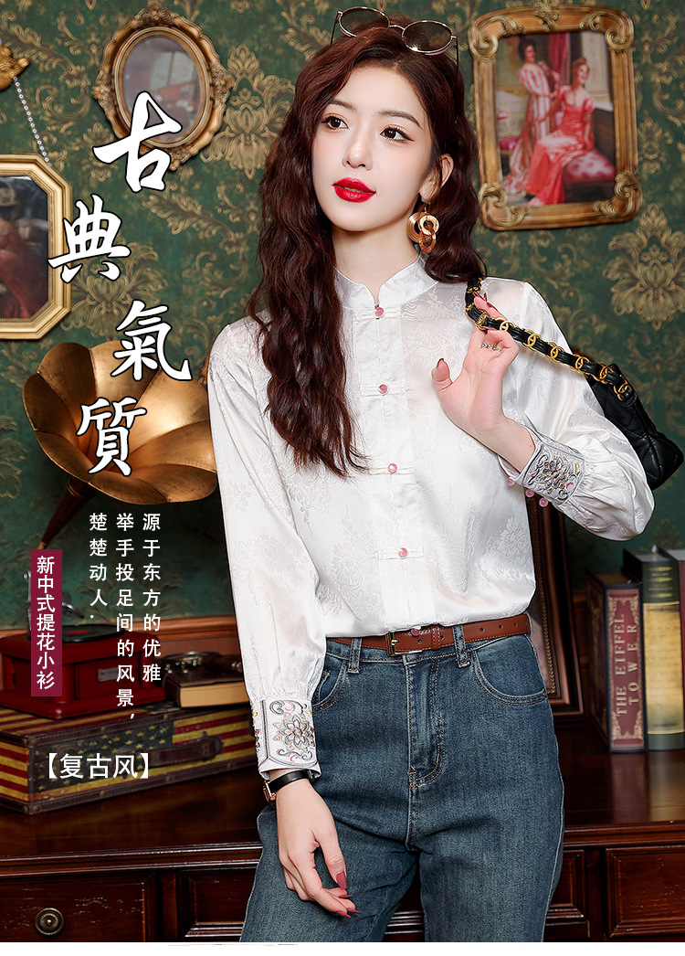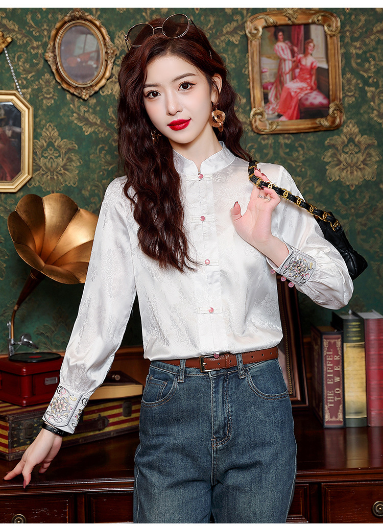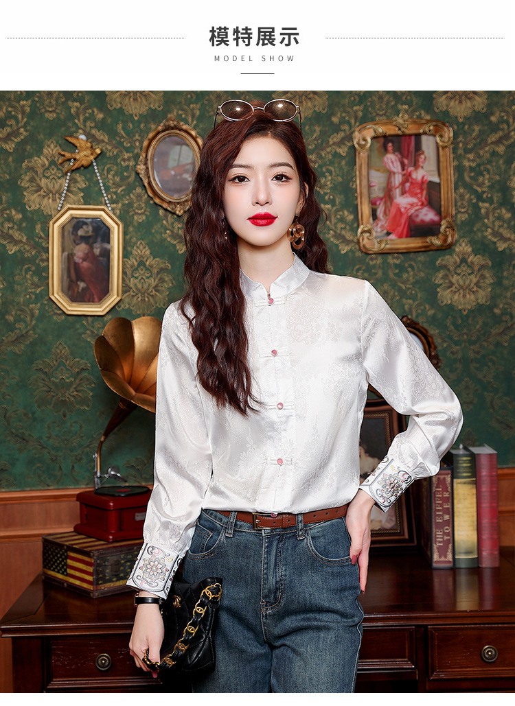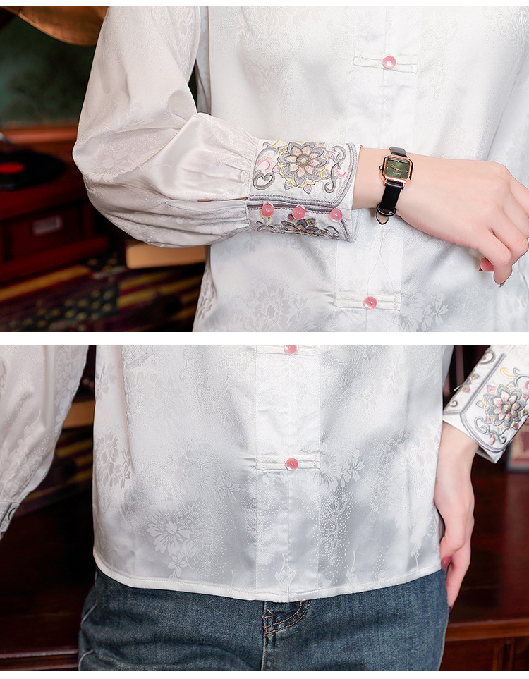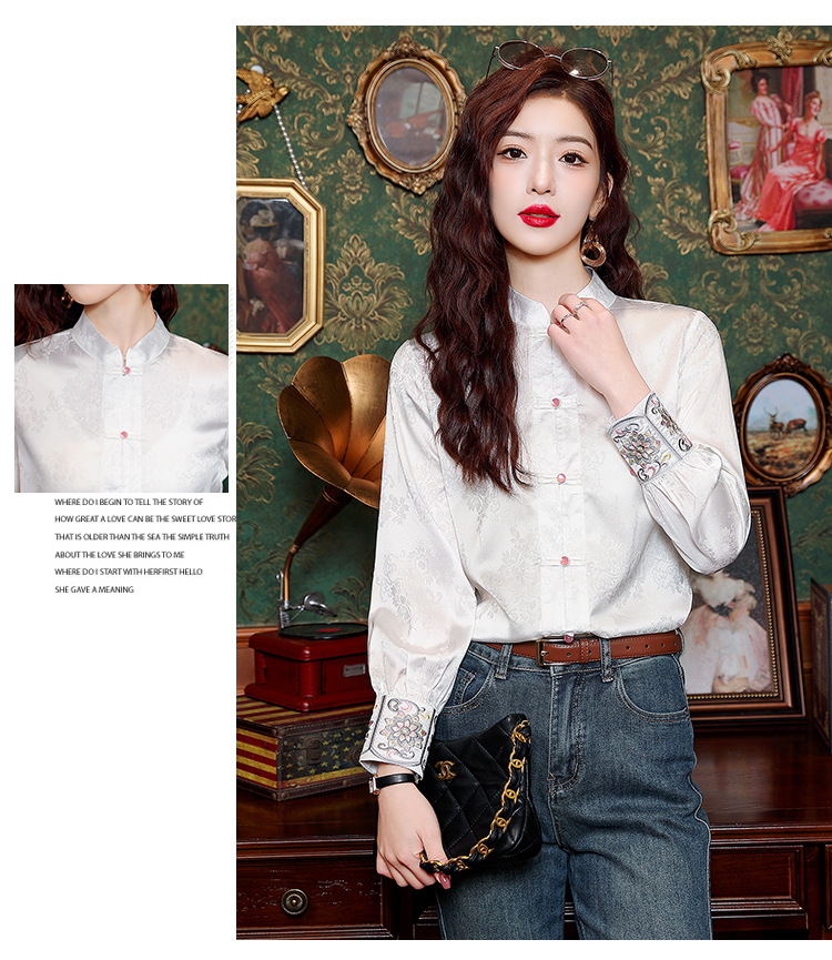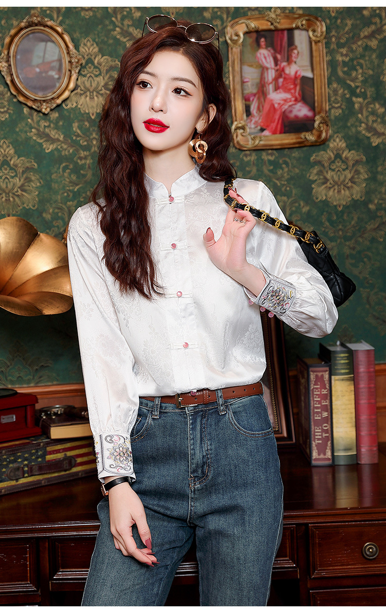 쉬폰 말머리 스커트 여름 탑 2025 새로운 패션 셔츠 여성 의류 중국 스타일 바닥 셔츠 자수 내부스토어 가기