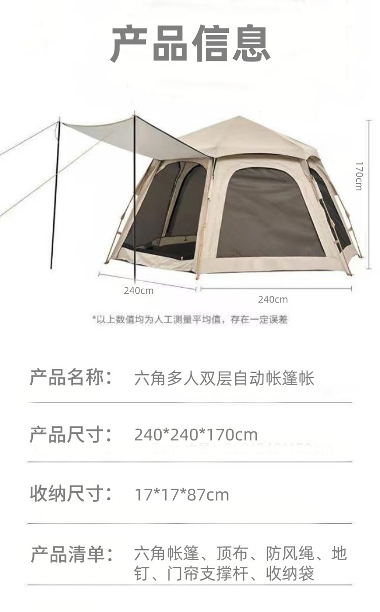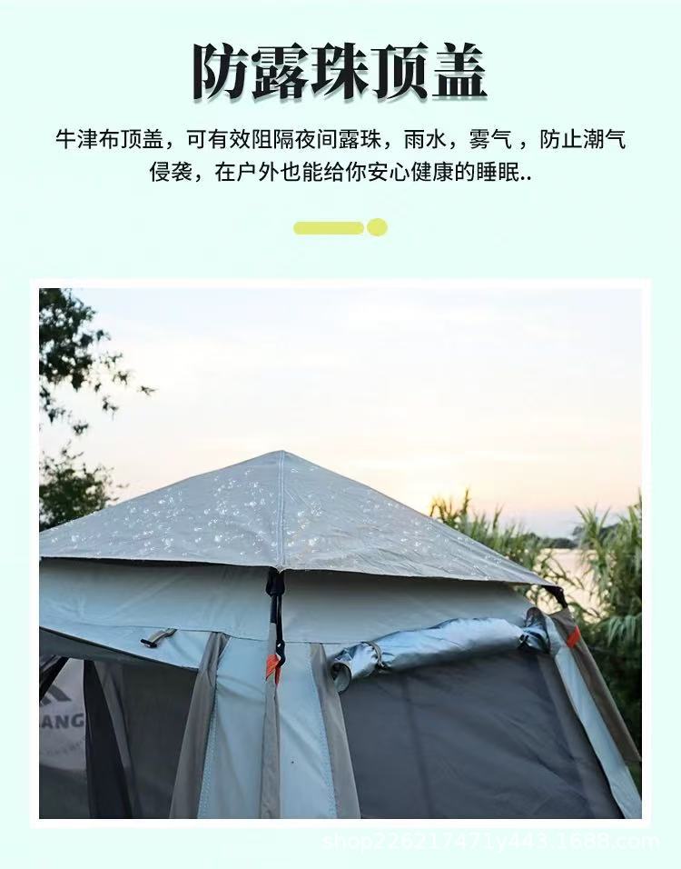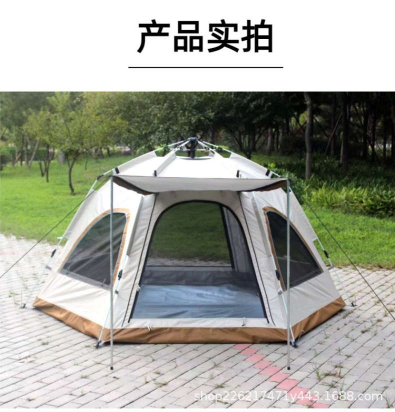 육각형 텐트 야외 캠핑용 다인용 편리한 자동설치 속전개 통풍성 자외선 차단 방수 도매스토어 가기