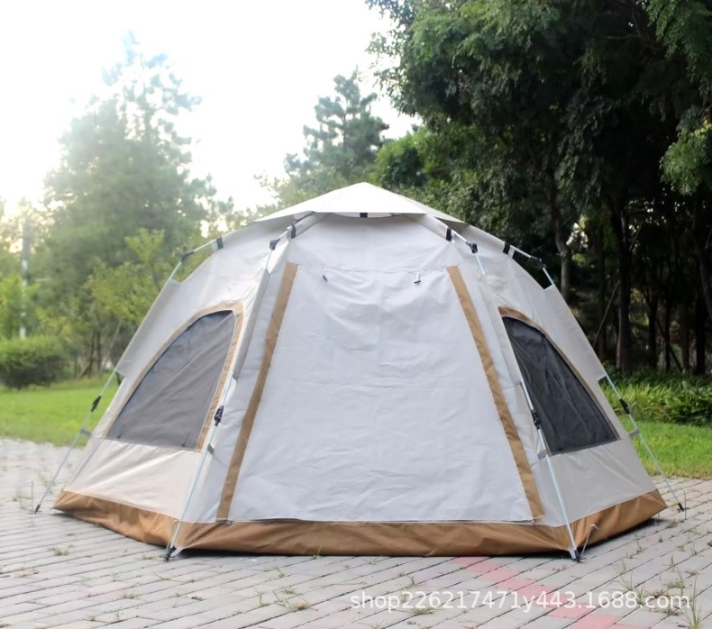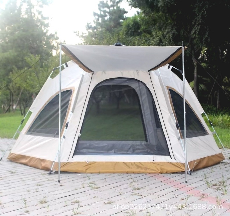 육각형 텐트 야외 캠핑용 다인용 편리한 자동설치 속전개 통풍성 자외선 차단 방수 도매