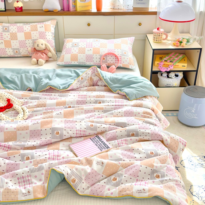 A급 이중 거즈 워싱면 여름 이불, 콩섬유 여름 시원한 이불, 얇은 만화무늬 기계세탁 가능 에어컨 이불, 선물용 이불스토어 가기