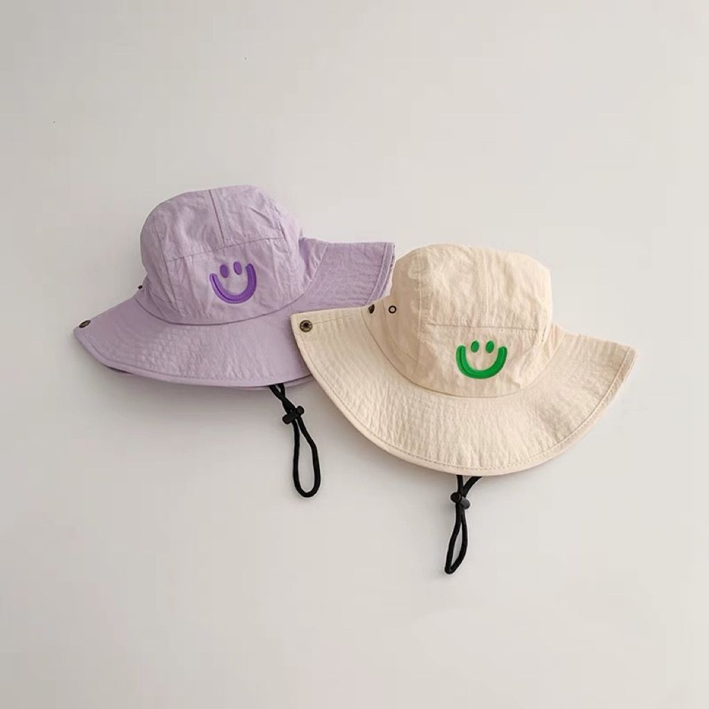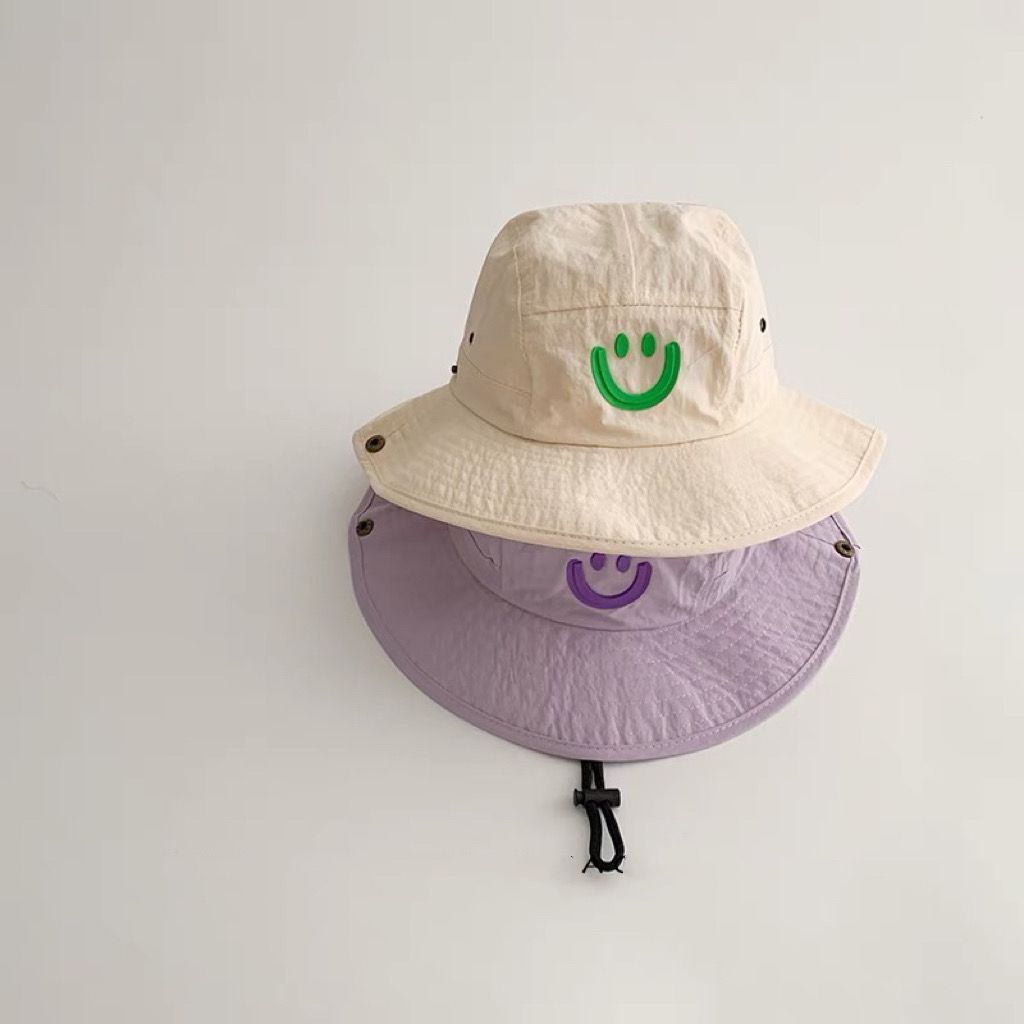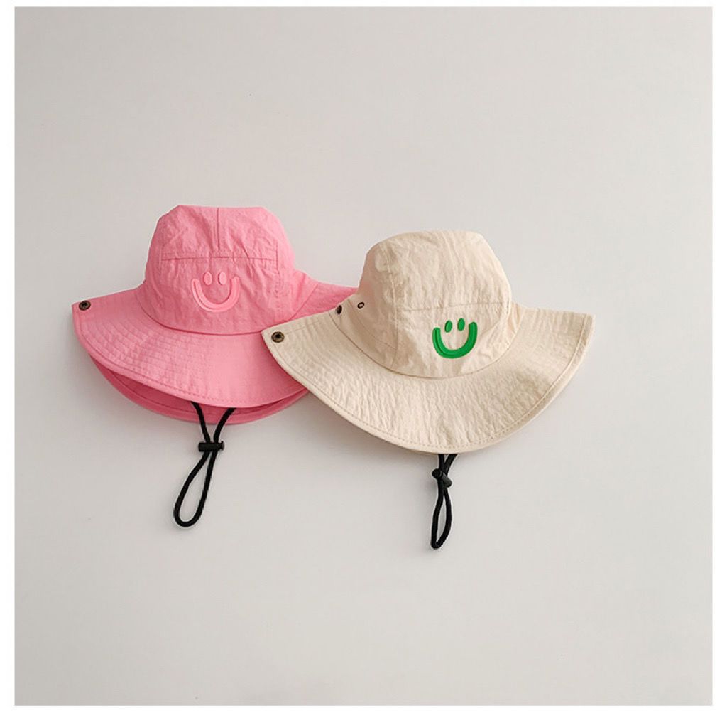 한국식 도파민 웃는 어린이 모자 여름 소년 소녀를위한 빠른 건조 큰 챙이 태양 모자 아기 여행 태양 모자 봄