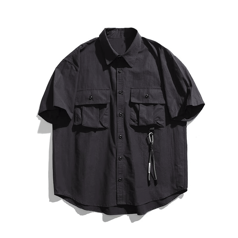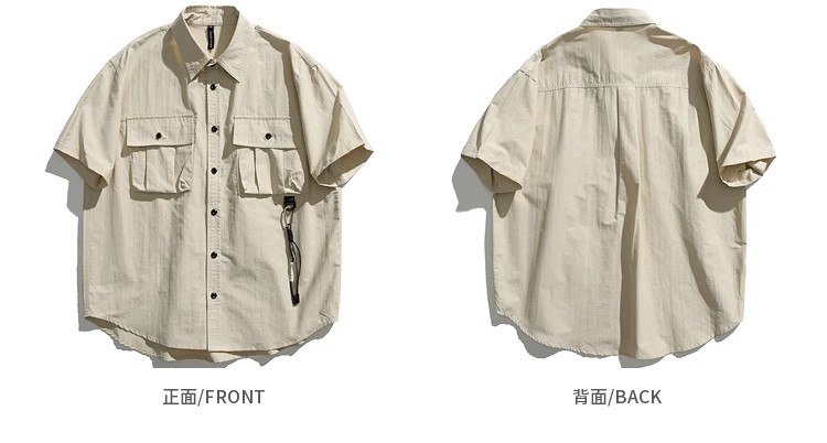 남자 일본식 레트로 작업복 반팔 셔츠 남자 여름 패션 브랜드 야외 캐주얼 올 매치 청소년 셔츠 재킷