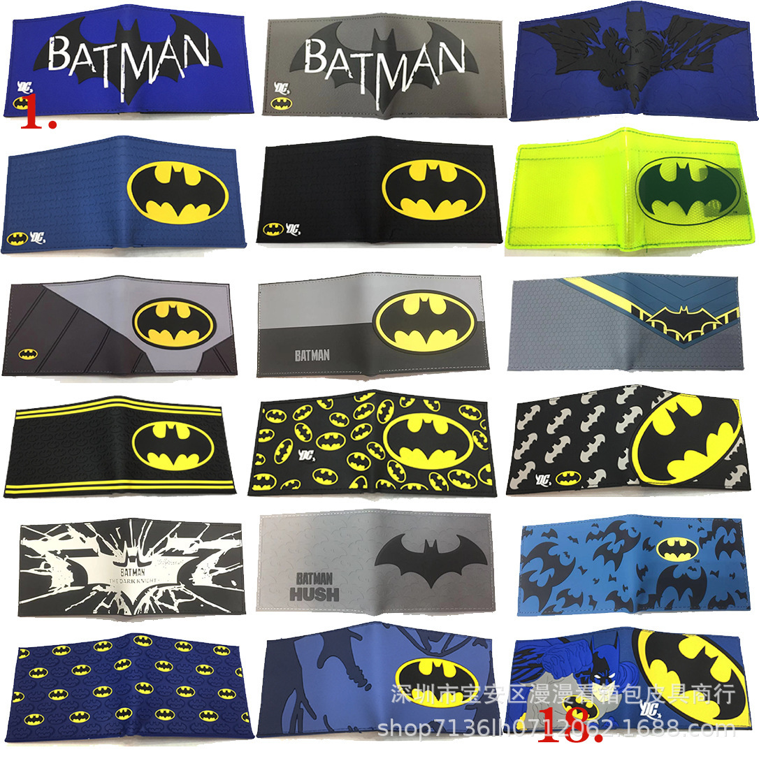 Q 버전 슈퍼 히어로 만화 짧은 2 배 Pvc 지갑 박쥐 주변 정의 동맹 고무 지갑스토어 가기