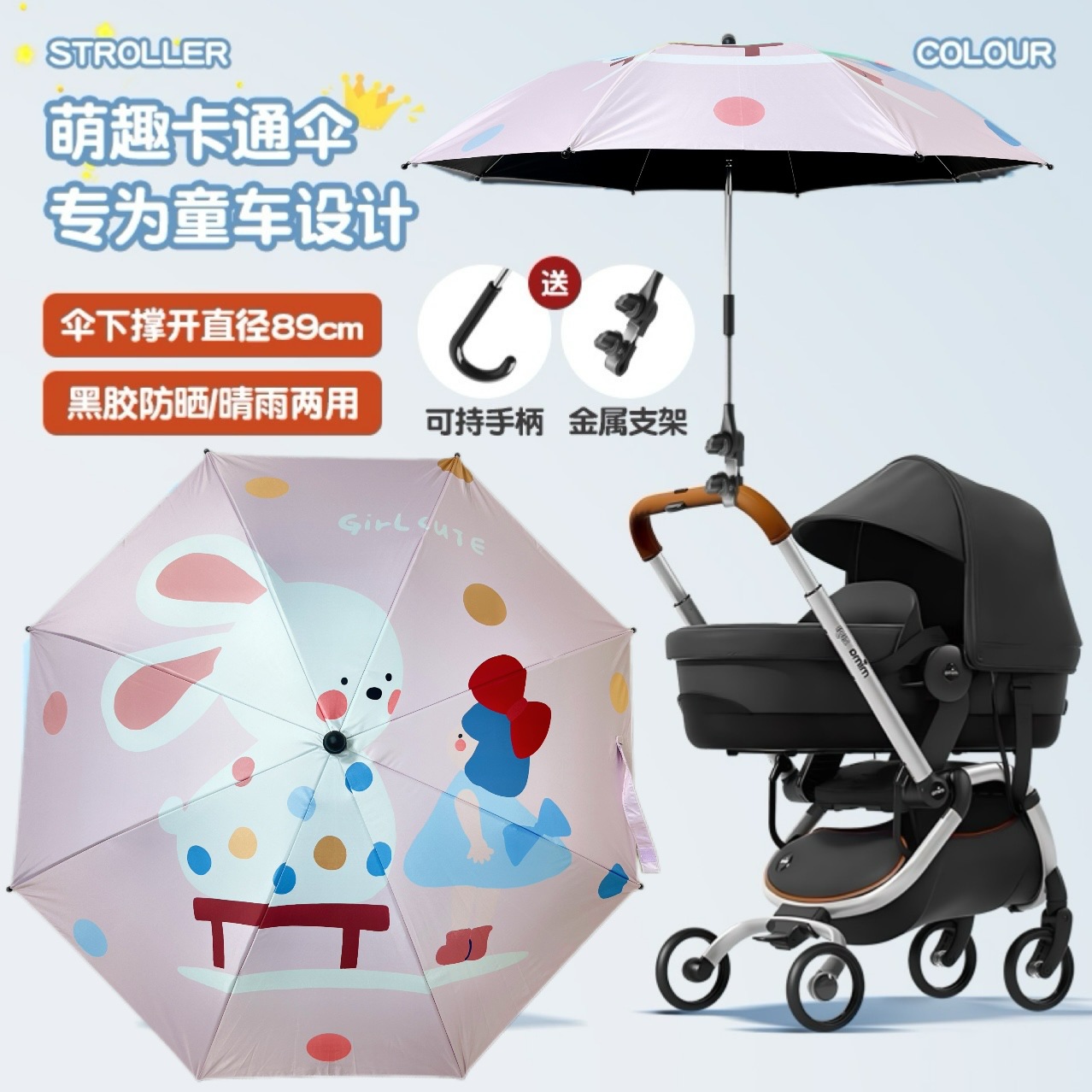 2025 새로운 유모차 우산 원래 만화 어린이 우산 유니섹스 자외선 차단 자외선 차양