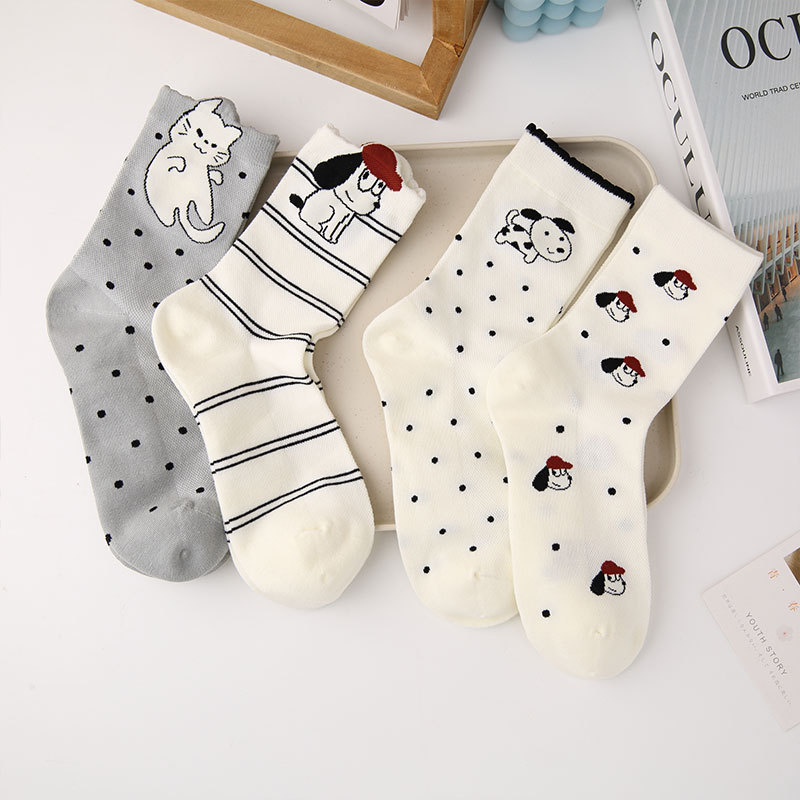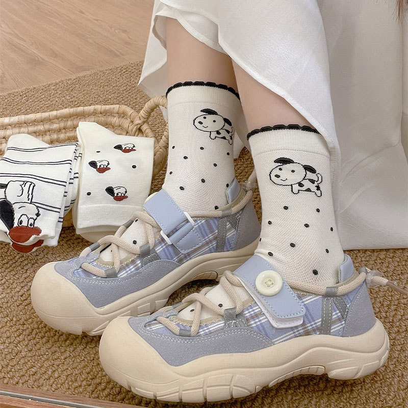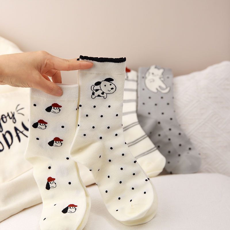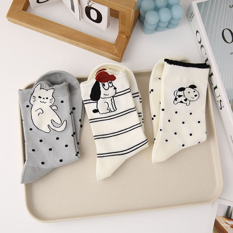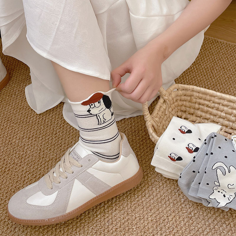 봄과 여름 새 한국 동대문 만화 강아지 양말 여성의 통기성 얇은 뼈없는 가죽 신발 면화 양말스토어 가기